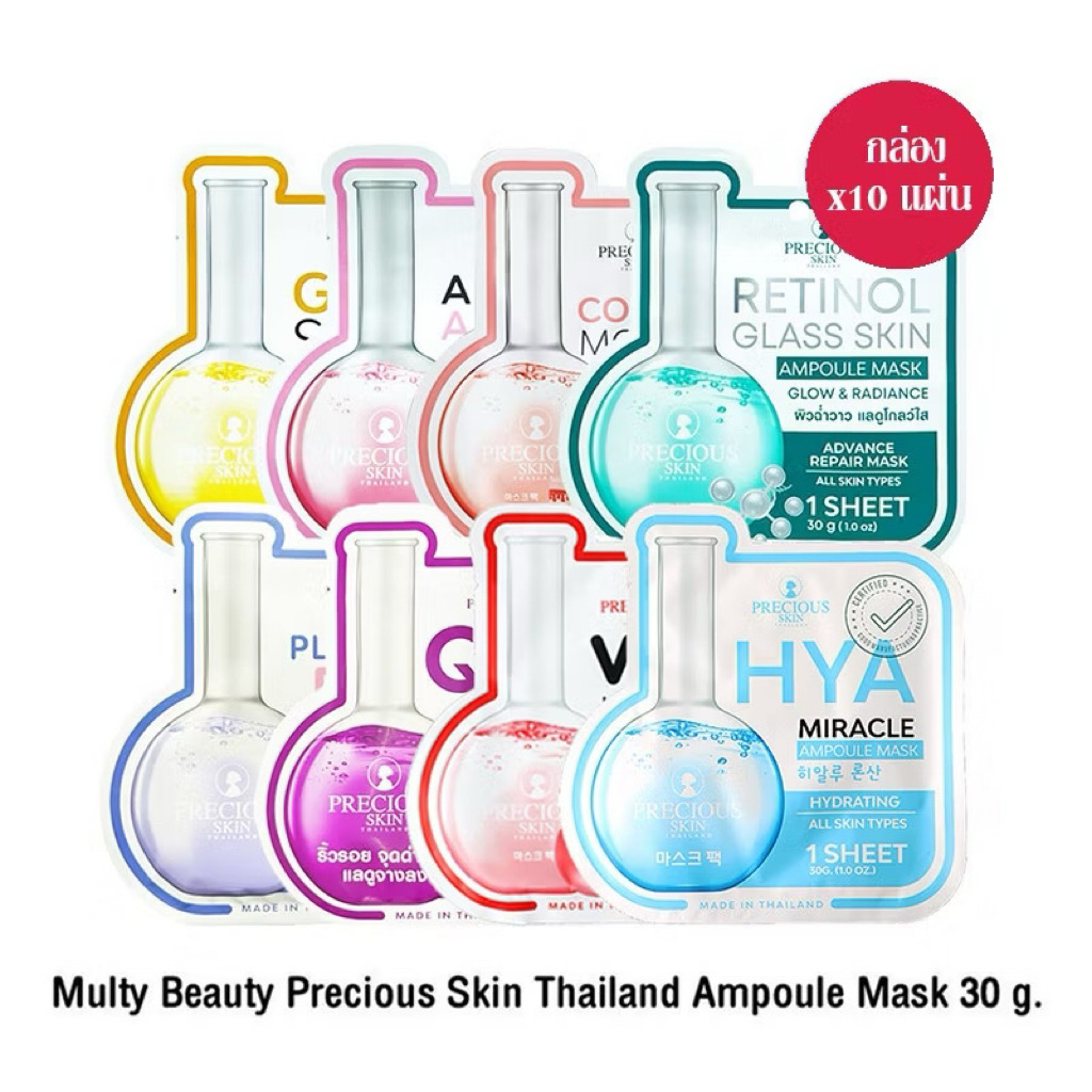 (10แผ่น/กล่อง) Precious Skin Ampoule Mask เพรชเชิส สกิน แอมเพิล มาส์ก (30กรัม/แผ่น) มีให้เลือก 7 สูตร