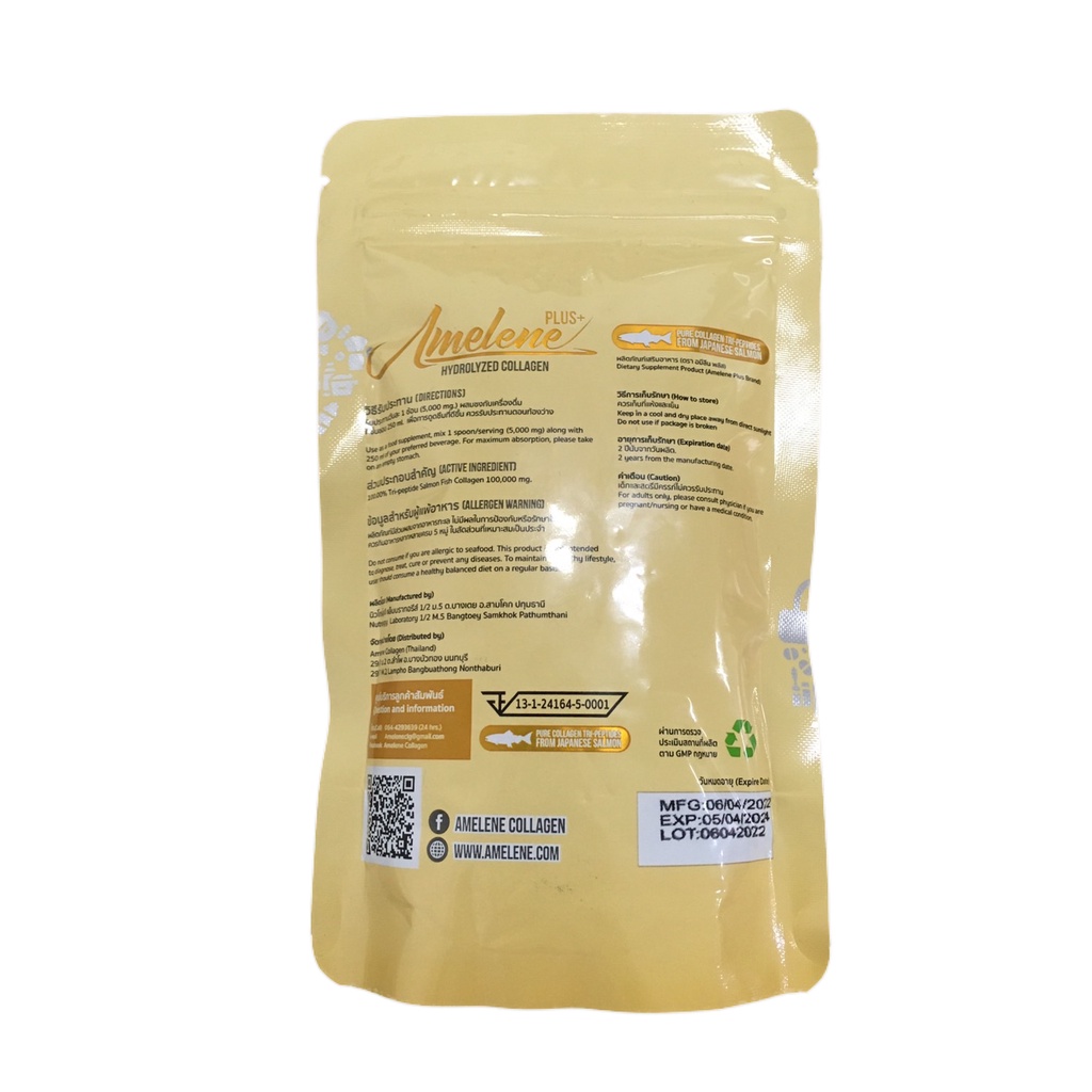 Amelene Plus+ Hydrolyzed Collagen [100 g.] อมีลีน พลัส ไฮโดรไลซ์ คอลลาเจนพรีเมียม จากญี่ปุ่น