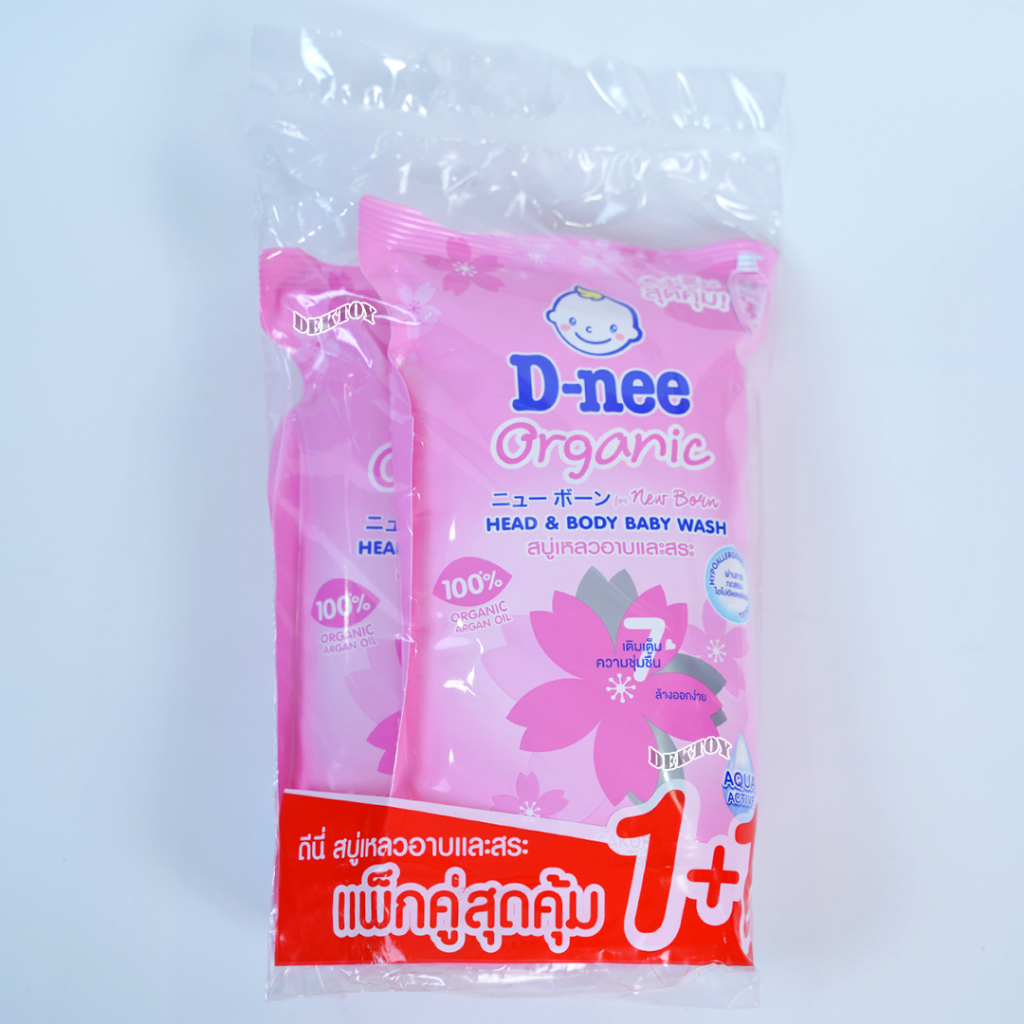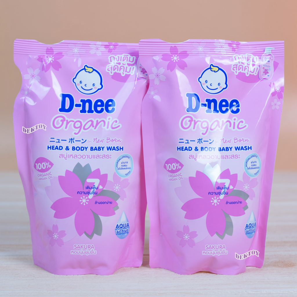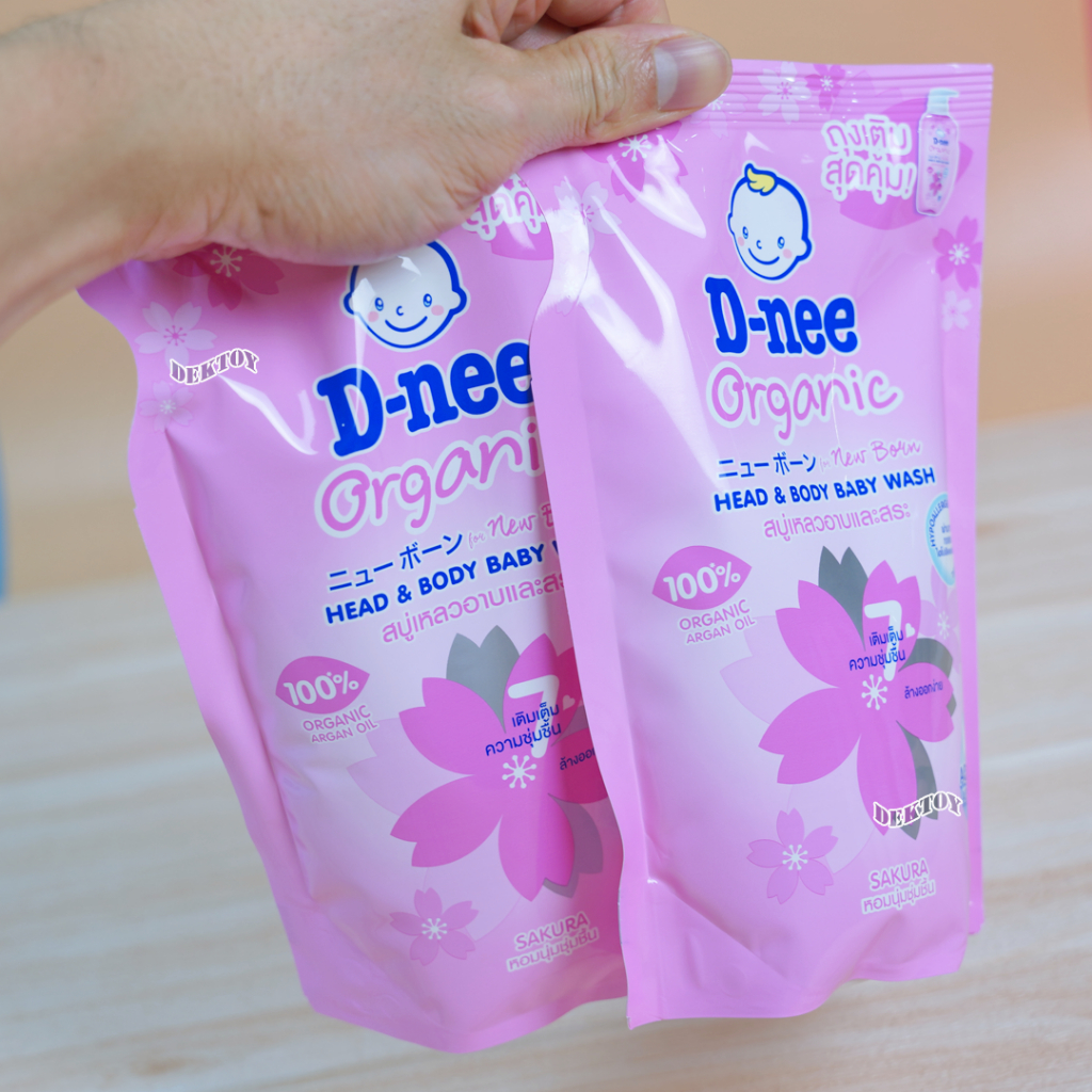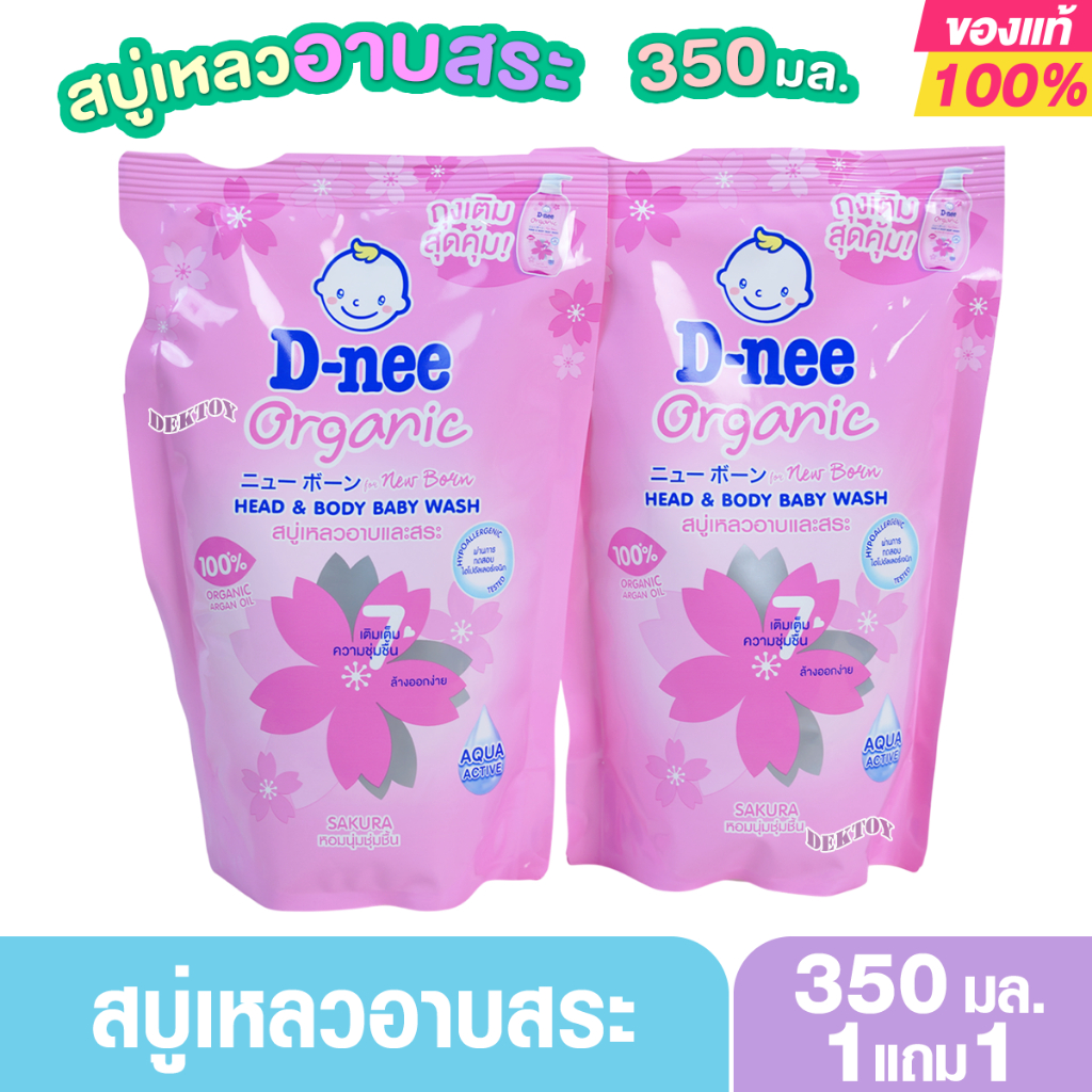แพ็คคู่ D-nee ดีนี่ ซากุระ ฟอร์นิวบอร์น สบู่และแชมพูอาบน้ำ 350 มล.ชมพู ถุงเติม