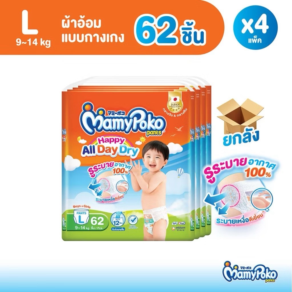 [ขายยกลัง 4 ห่อ] MAMYPOKO มามี่โพโค กางเกงผ้าอ้อมเด็ก รุ่นAll day dry