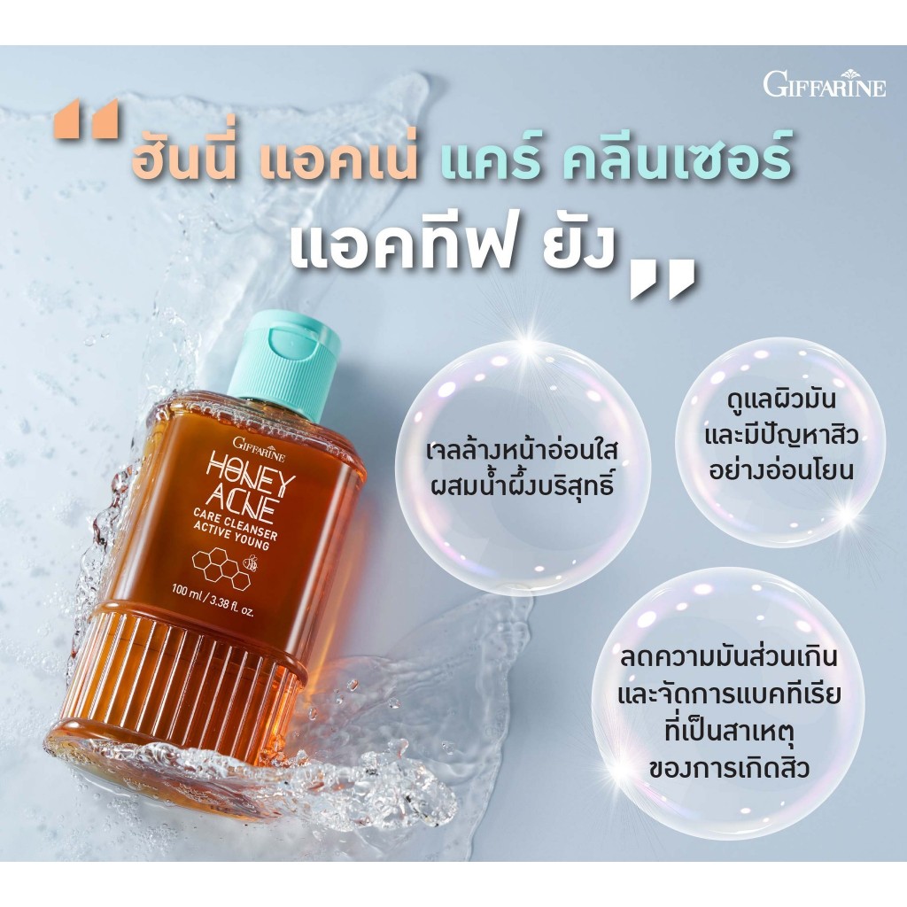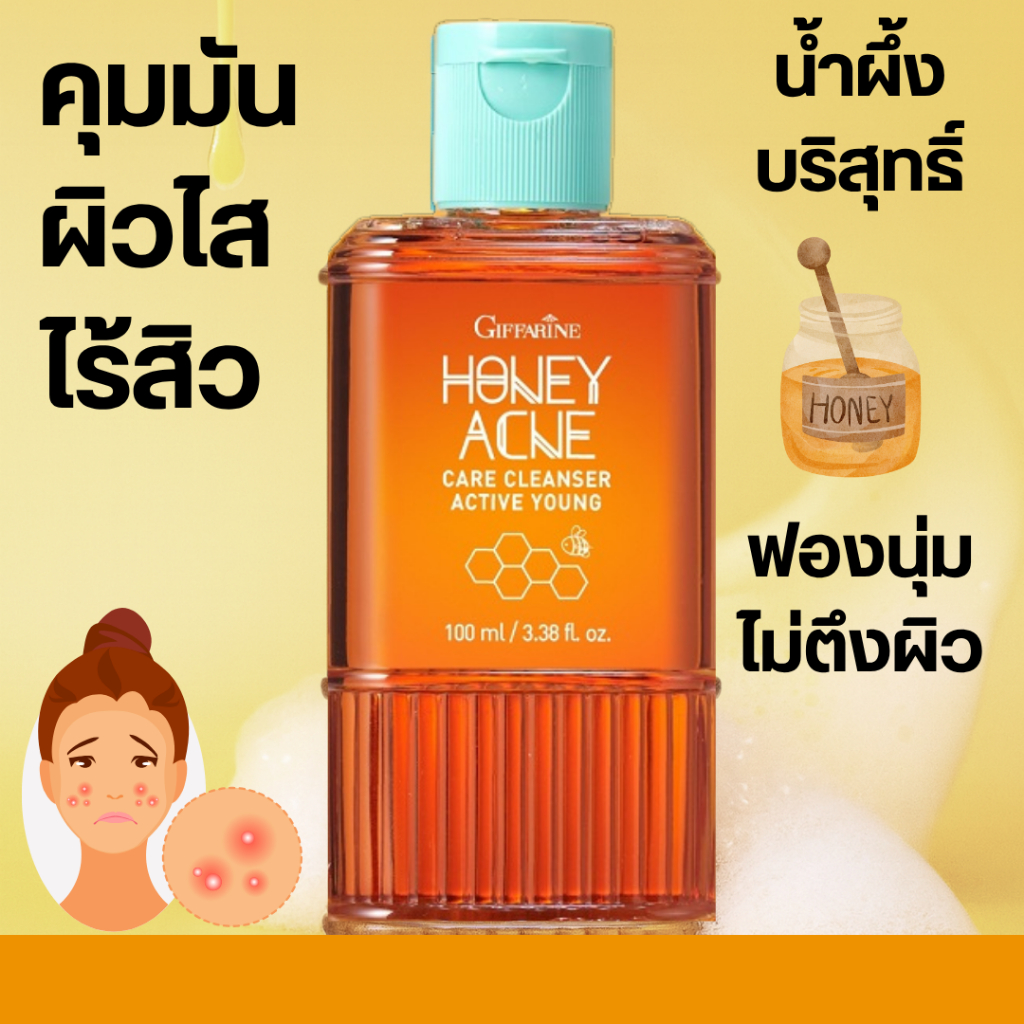 เจลล้างหน้า ลดสิว เจลน้ำผึ้ง เจลล้างหน้ากิฟฟารีน สิว คุมมัน Active Young Honey Acne Care Giffarine