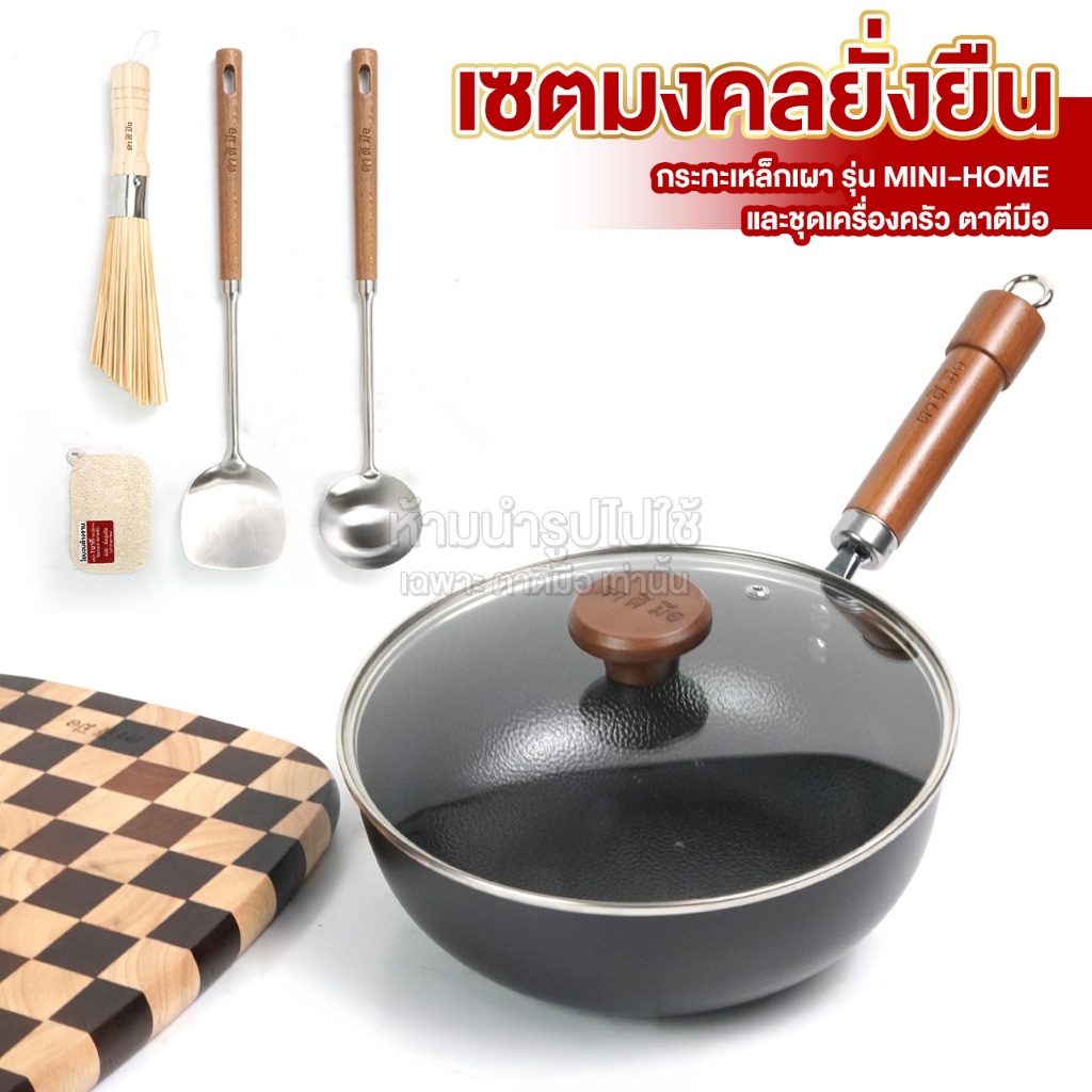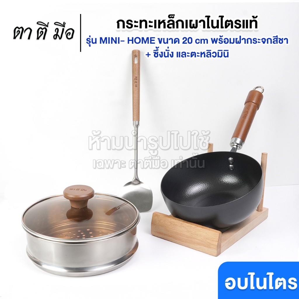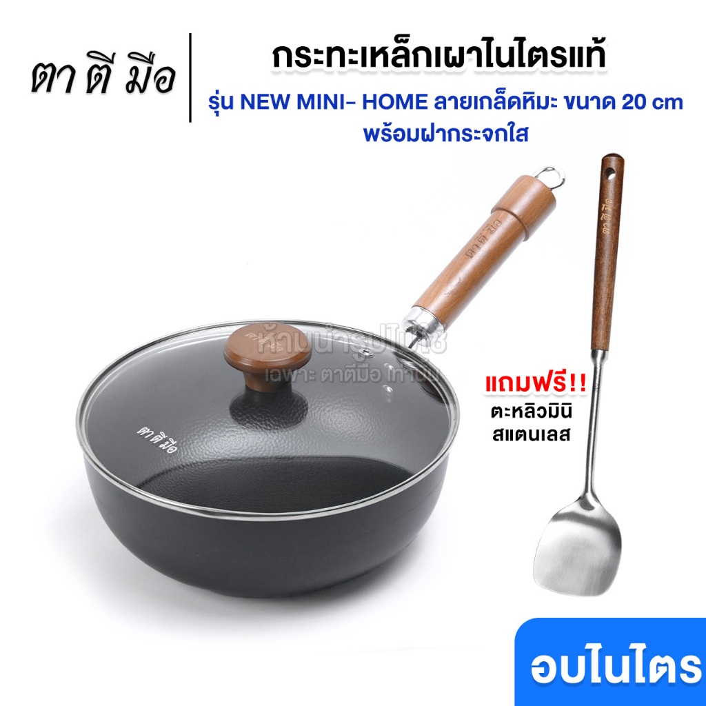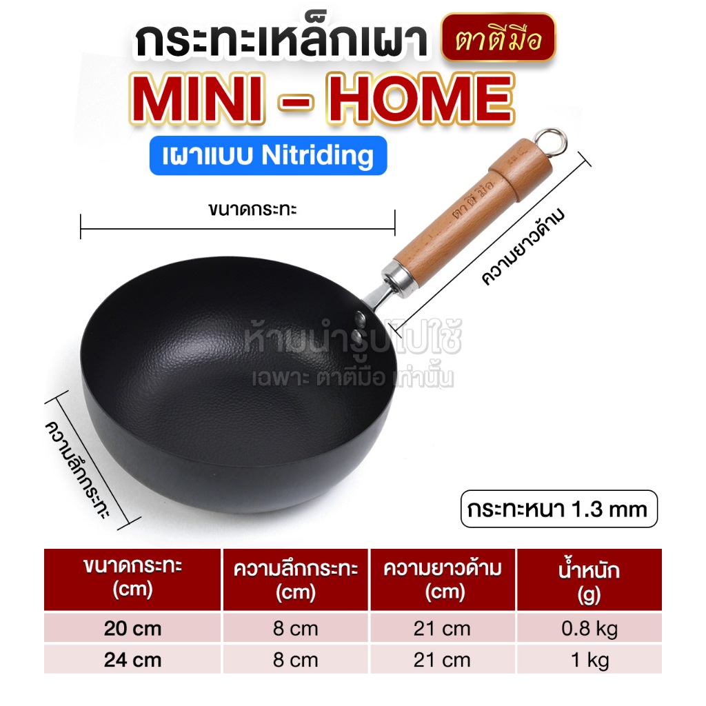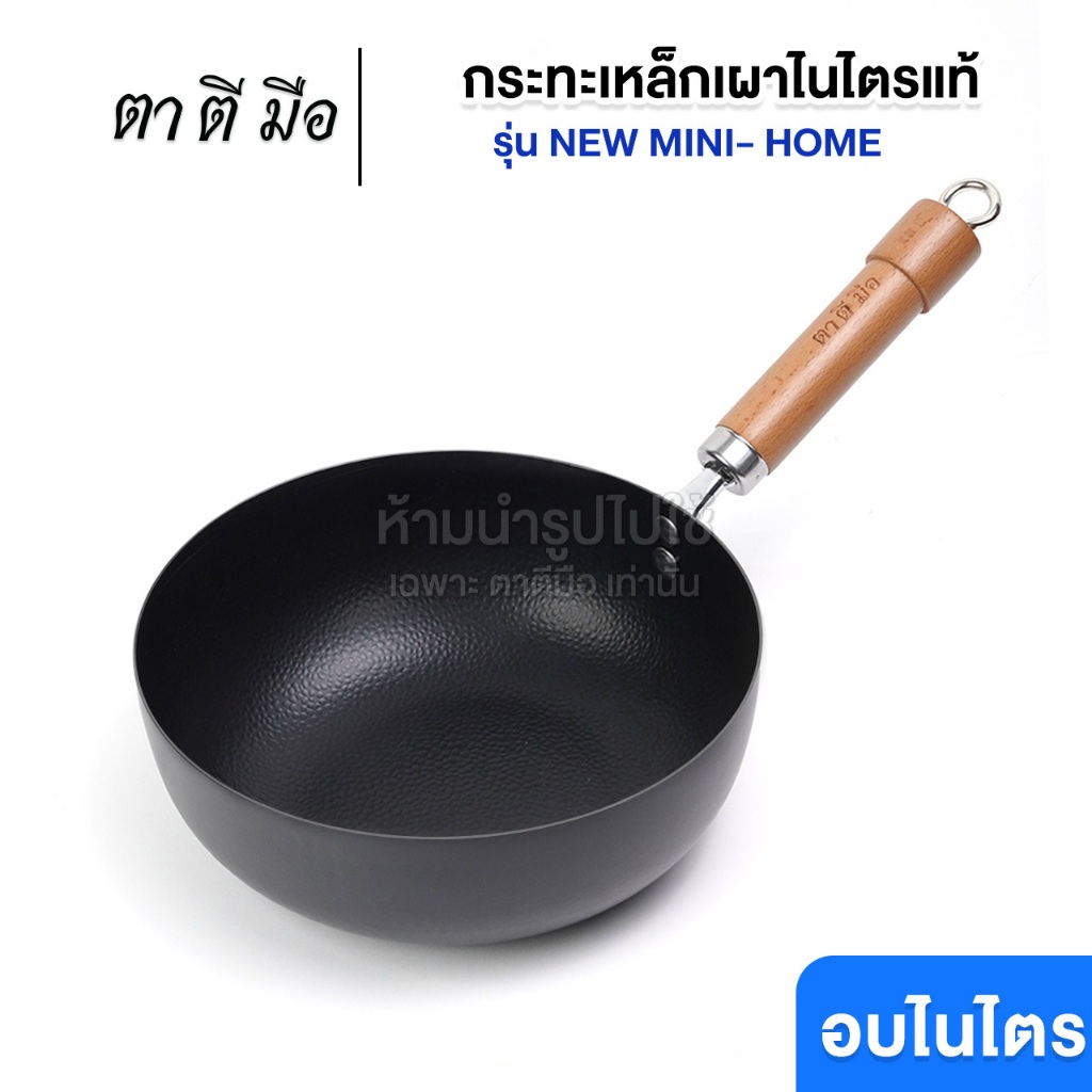 ตาตีมือ กระทะเหล็กเผา ก้นแบน กระทะเหล็กเผาแล้ว รุ่น MINI-HOME รุ่นใหม่ ไร้สารเคลือบ อบไนไตรดิ้งพิเศษ รับประกันสินค้า5ปี