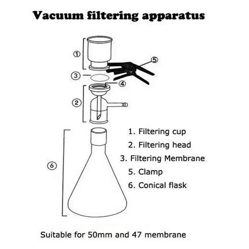 Glass Vacuum Filtration Membrane Buchner Lab Medical Refillable Bottle Funnel Flask Apparatus Kit with MCE Filter Manual