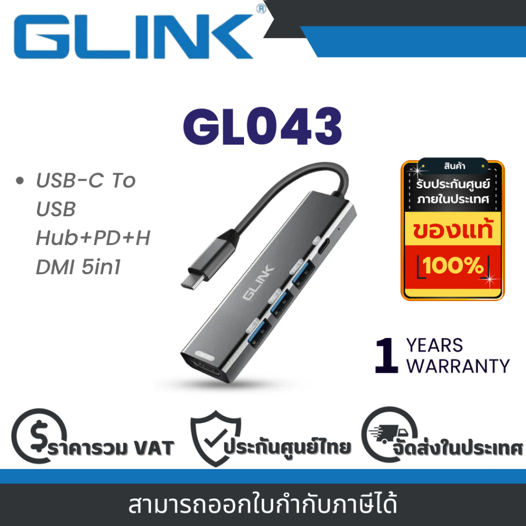 Glink GL043 USB-C To USB Hub+PD+HDMI 5in1 By Vnix Group