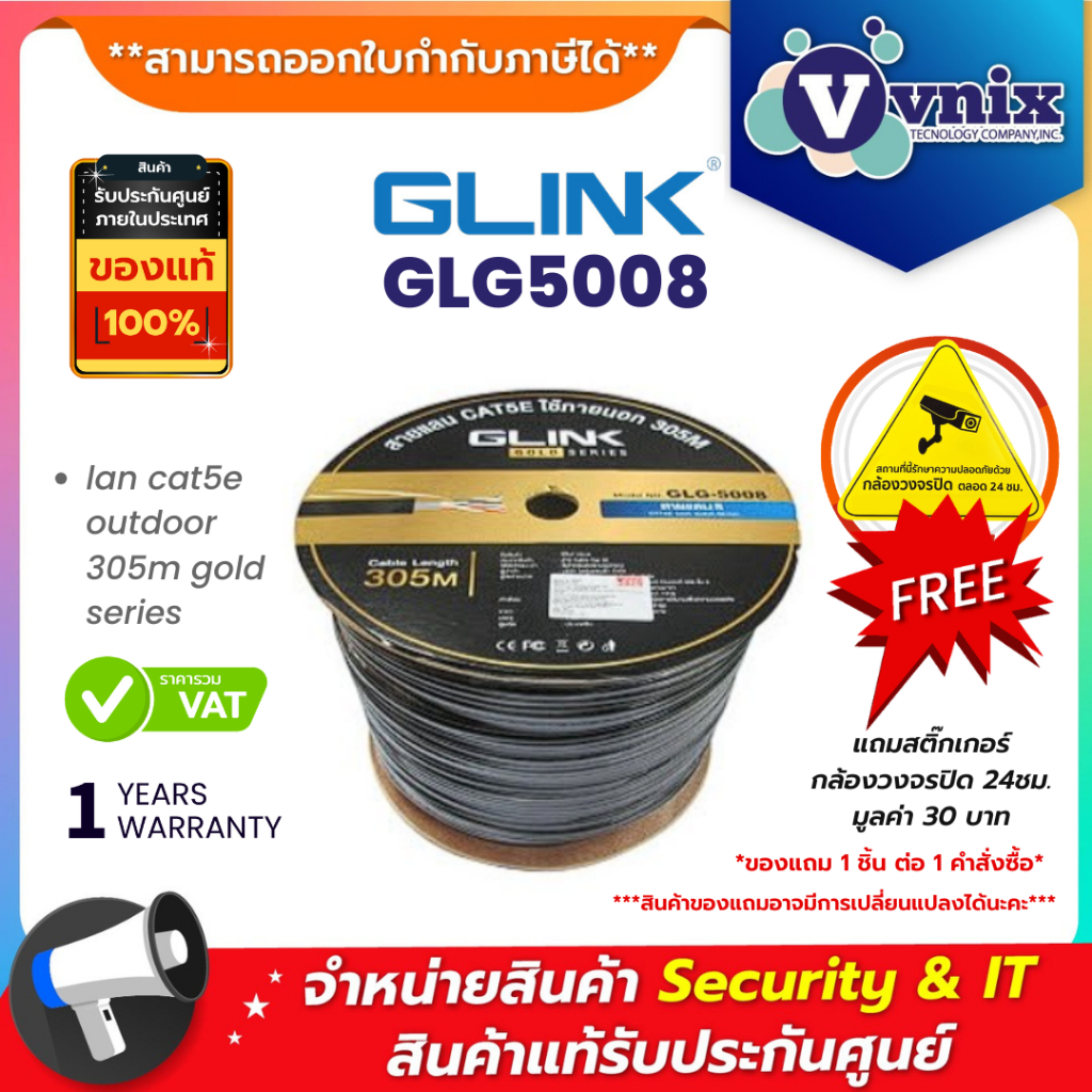 Glink GLG5008 Outdoor Cable สายแลนภายนอก 24AWG cat5e gold series ยาว 305 ม. (ไม่เข้าหัวไปให้) ประกัน 1 ปี By Vnix Group