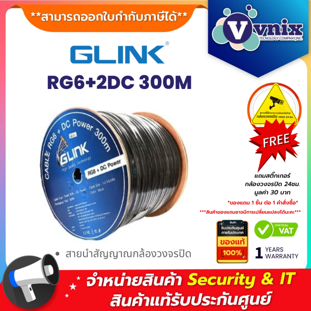 Glink RG6+2DC 300M สายนำสัญญาณกล้องวงจรปิด By Vnix Group