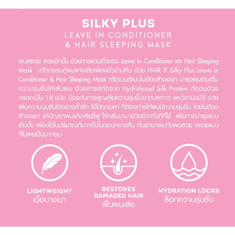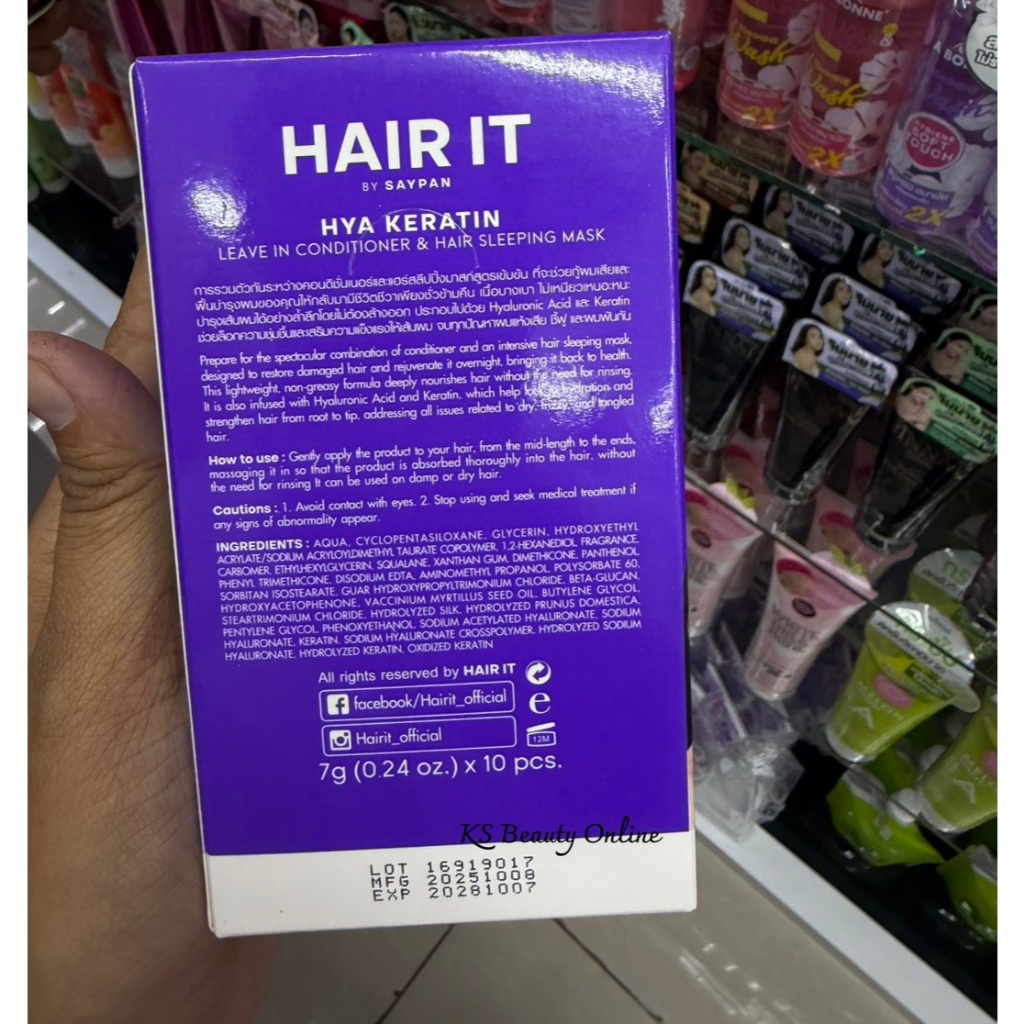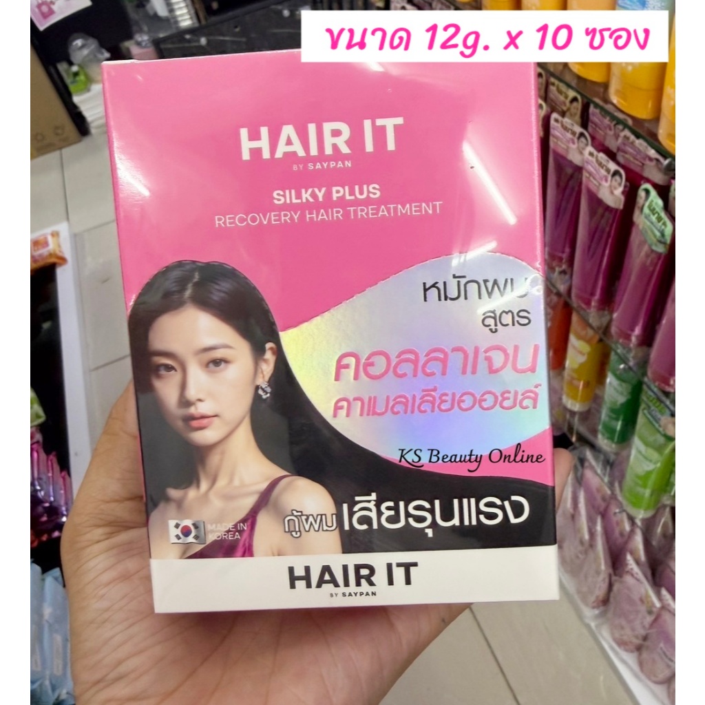(ยกกล่อง x 10ซอง) แฮร์อิท ทรีทเม้นท์ & แฮร์สลีปปิ้งมาสก์ Hair it By Saypan Hya Keratin , Silky Plus