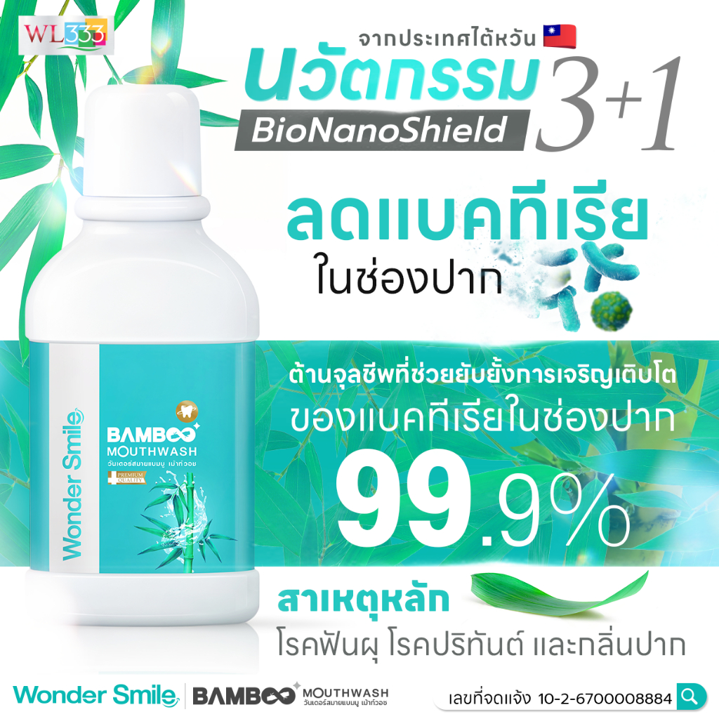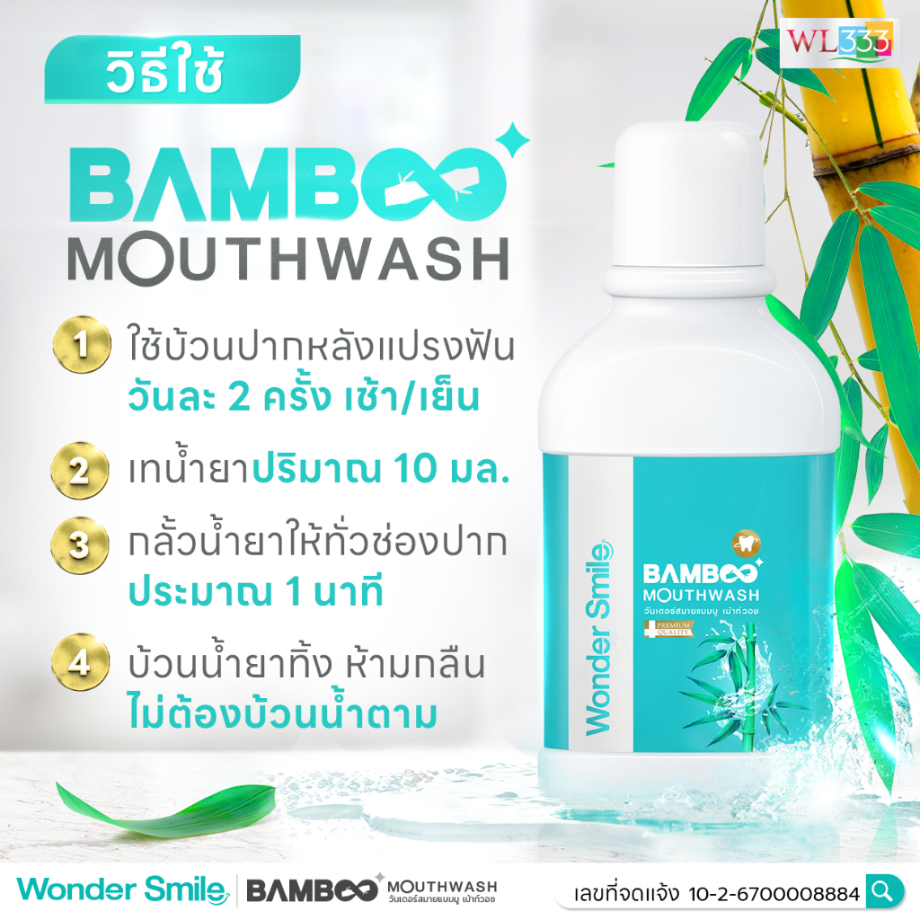 แบมบู 6 แถม 4 น้ำยาบ้วนปาก Wonder Smile Bamboo Mouthwash 300 ml. สะอาดสดชื่น อ่อนโยนต่อสุขภาพช่องปาก