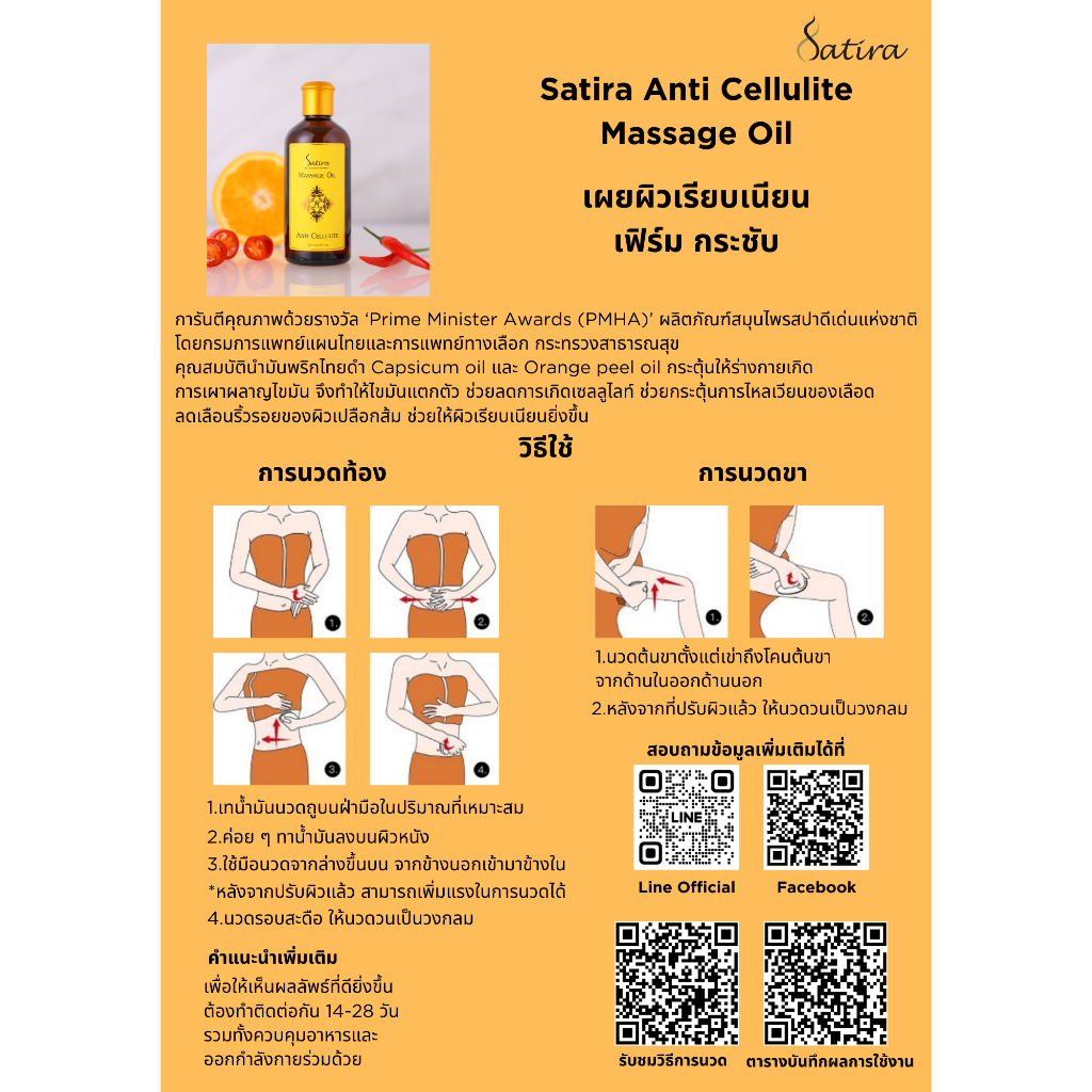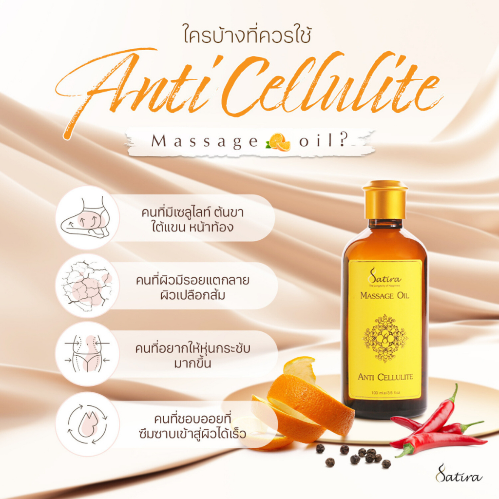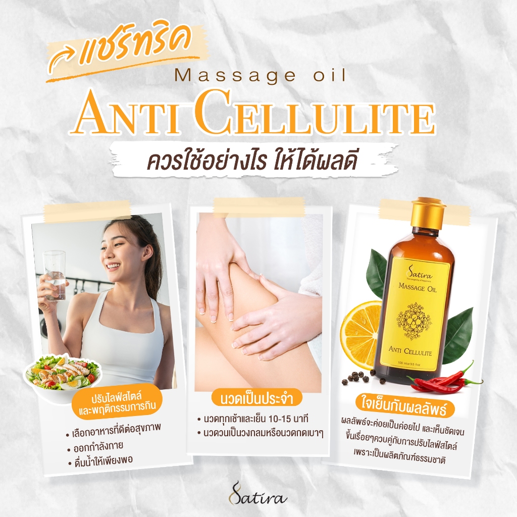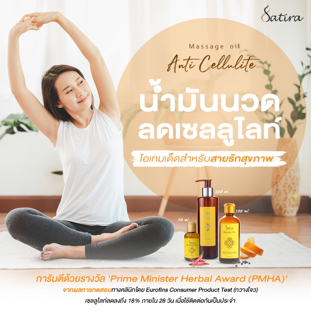 Satira Massage oil Anti Cellulite สถิรา น้ำมันนวดผิวกาย กระชับผิว ลดรอยแตกลาย 100 ml.