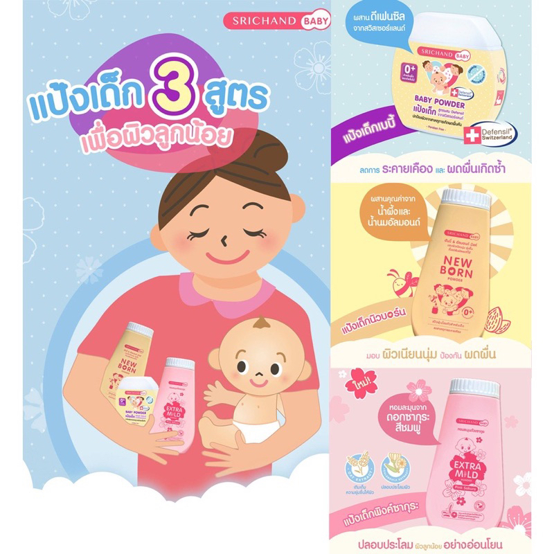 ส่งฟรี/มีไลฟ์ แป้งเด็ก ศรีจันทร์ เบบี้พาวเดอร์/นิวบอร์น/เอ็กซ์ตร้า มายด์ New born