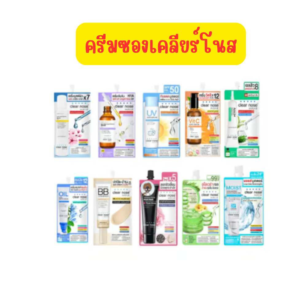 ครีมซองเคลียร์โนส เซรั่มบูสต์ผิว/เจลโฟมล้างหน้า/บีบีคอนซิลเลอร์/ดาร์กสปอร์ต/มาร์คดํากุหลาบ (ซอง)