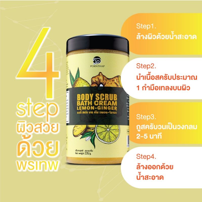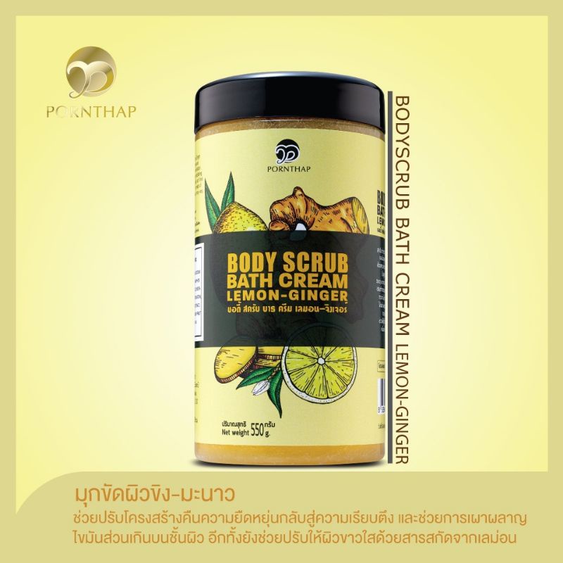 PORNTHAP Body Scrub Honey 550g พรเทพ สครับขัวผิว สูตรมะนาว - ขิง