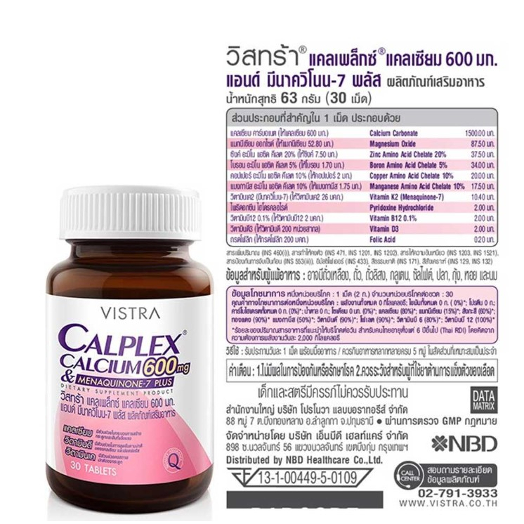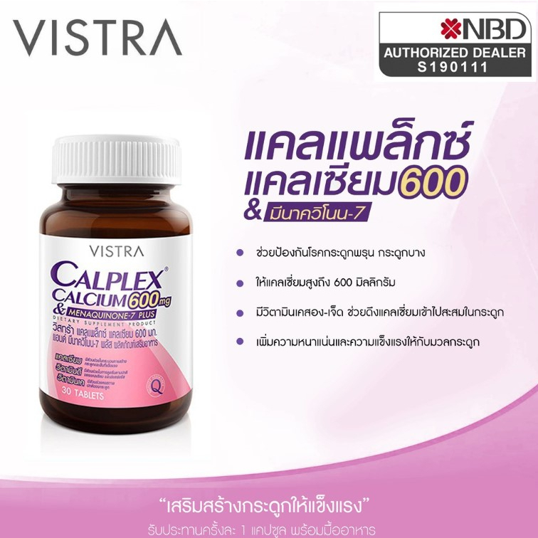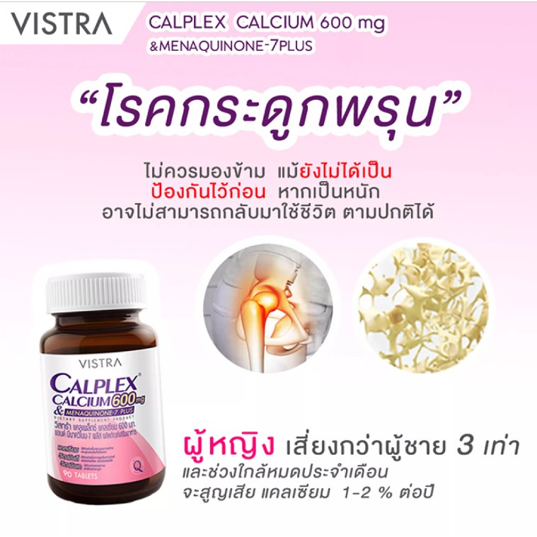 VISTRA CALPLEX CALCIUM 600 mg & MENAQUINONE-7 PLUS 30และ90 เม็ด