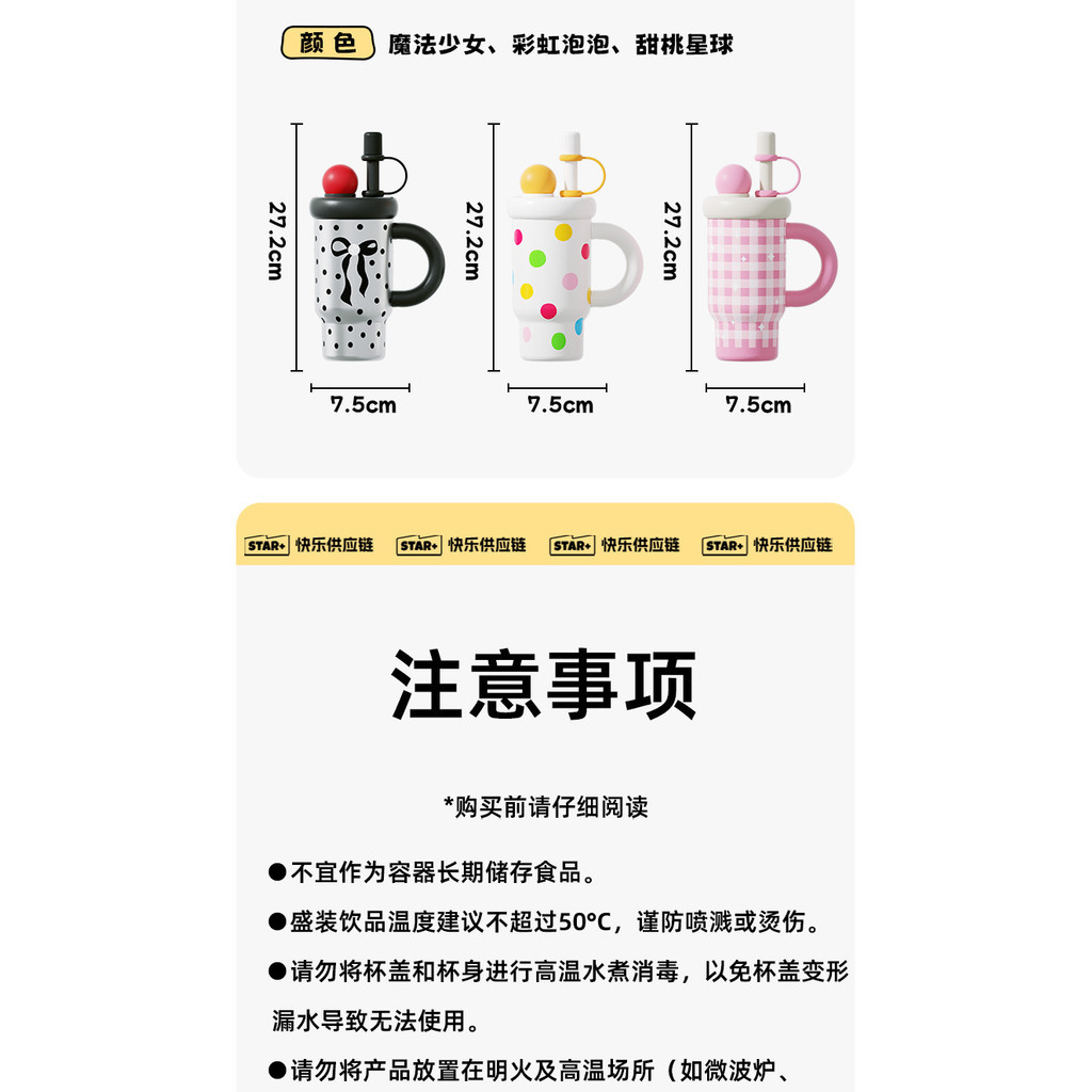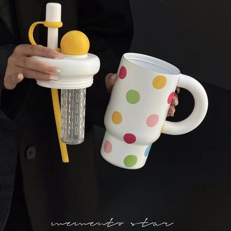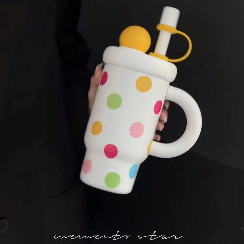 Star+ ถ้วยเก็บความร้อนเซรามิกขนาดใหญ่-ความจุกระติกน้ําร้อนฟางขวดน้ําน้ําแข็งมาสเตอร์ถ้วยน่ารักถ้วยน้ําถ้วยกาแฟ