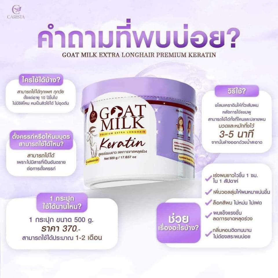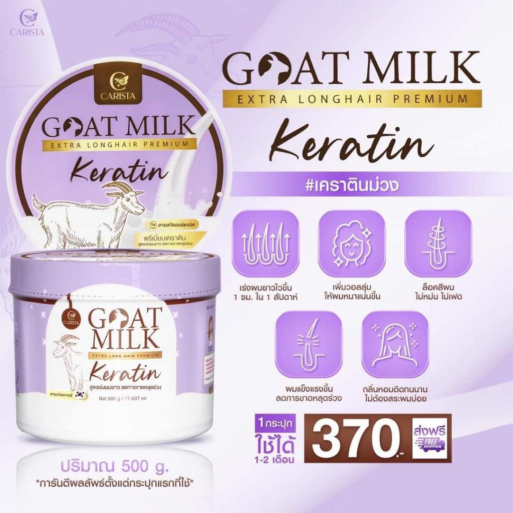 สูตรใหม่! เคราติน นมแพะ เคราตินม่วง ล็อคสีผม เร่งผมยาว ลดผมร่วง ผมบาง คาริสต้า เคราตินนมแพะ