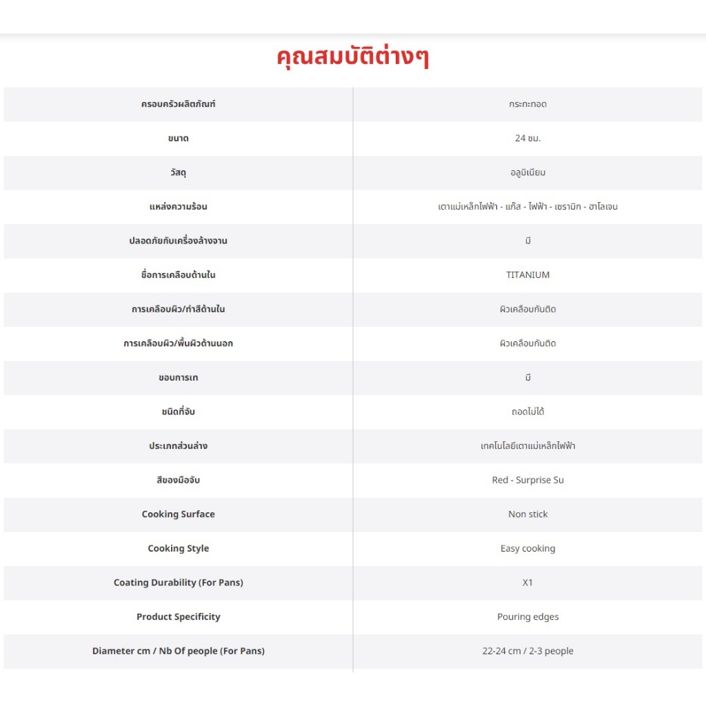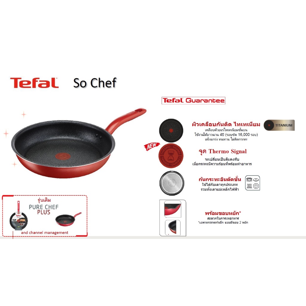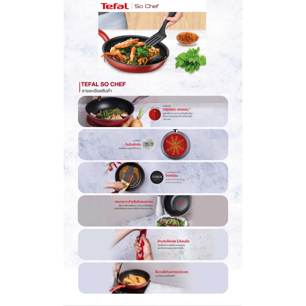 Tefal So Chef กระทะก้นแบน ก้นอินดักชั่น เคลือบไทเทเนียม ขนาด 24 ซม. รุ่น G1350496 รับประกันสินค้า 2 ปี