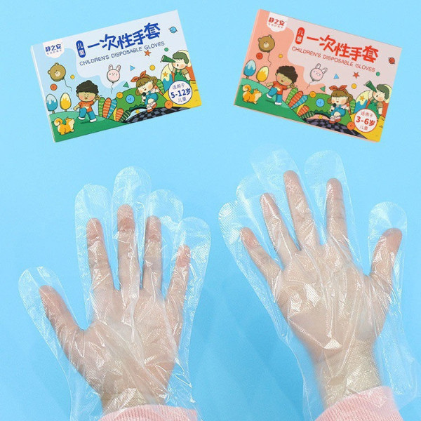 ถุงมือพลาสติก แบบใช้แล้วทิ้งสําหรับเด็ก 200ชิ้น/กล่อง ถุงมืออเนกประสงค์