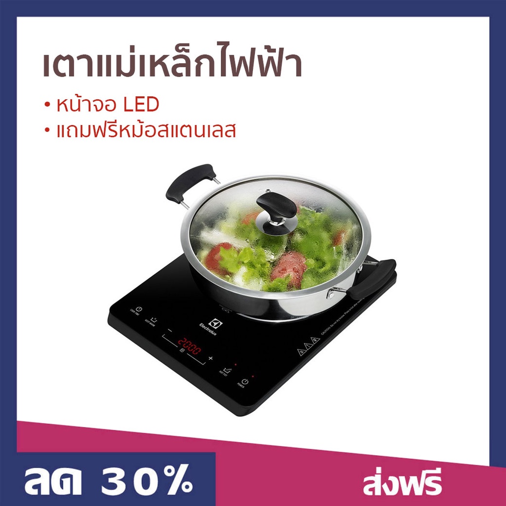 เตาแม่เหล็กไฟฟ้า Electrolux หน้าจอ LED แถมฟรีหม้อสแตนเลส ETD29PKR - เตาไฟฟ้า induction