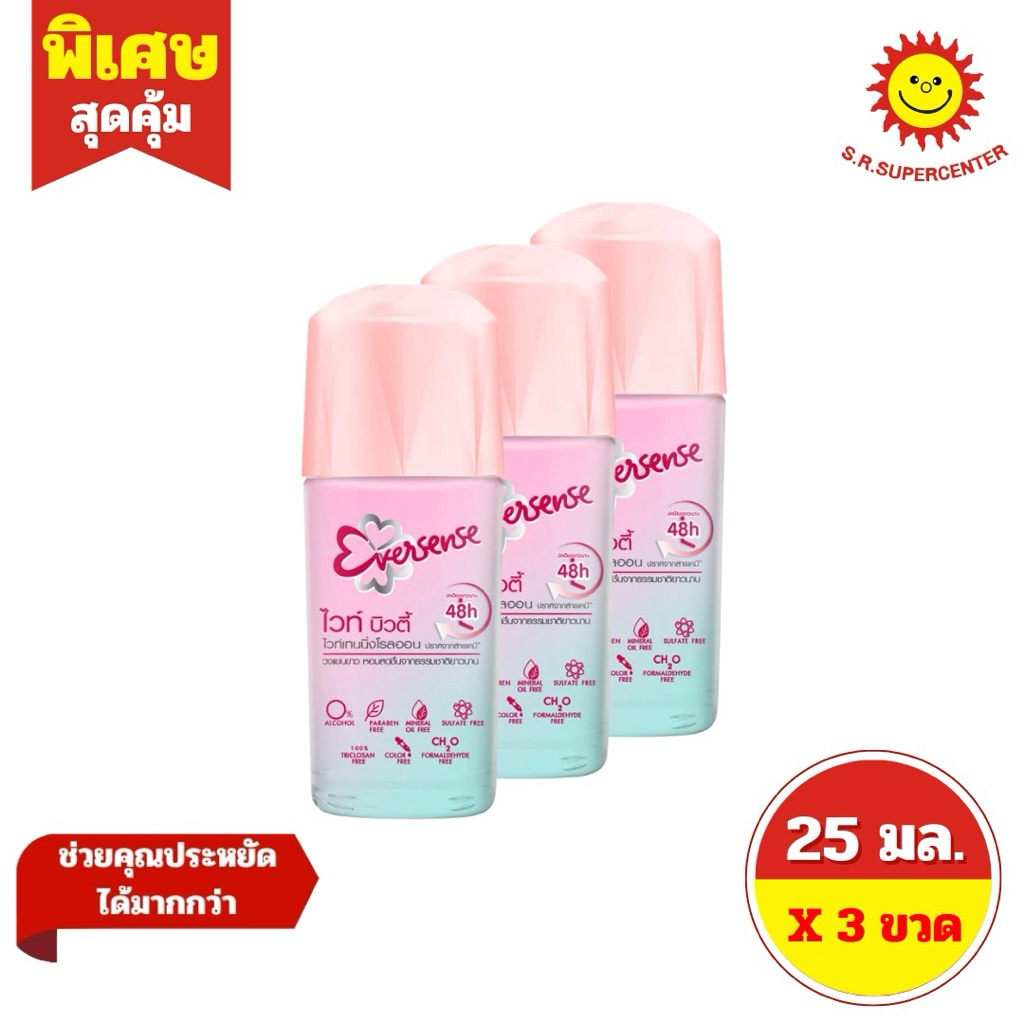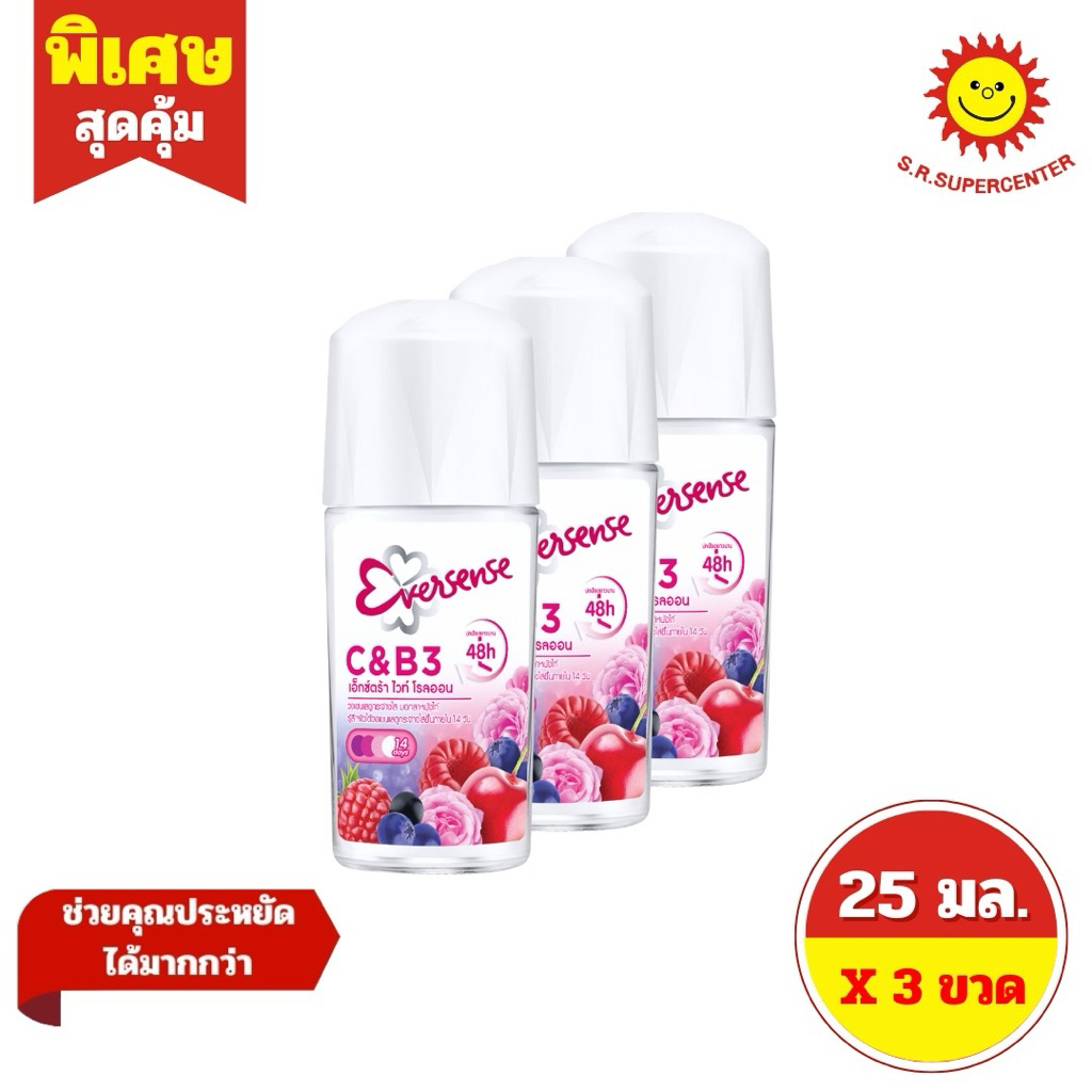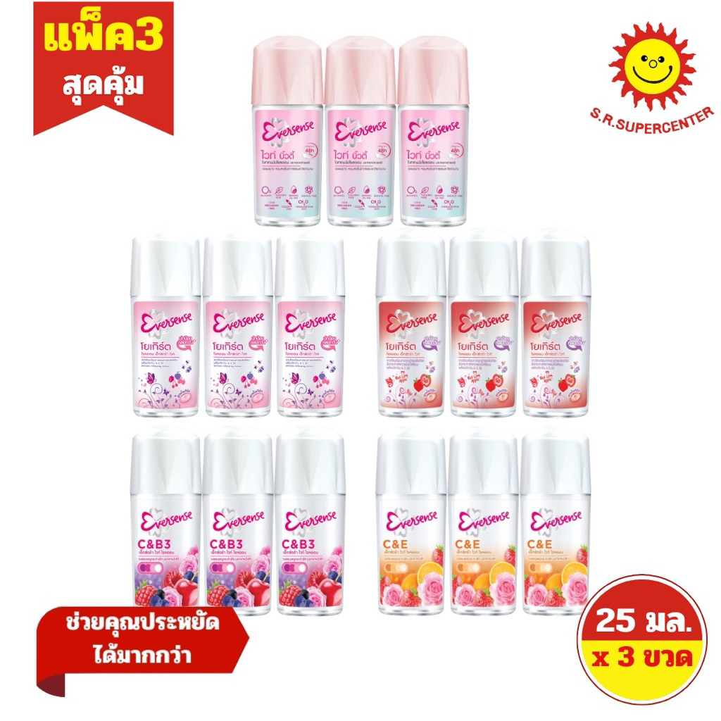 [ 3 ขวด ] Eversense เอเวอร์เซ้นส์ โรลออน ขนาด 25 มล. (3ขวด) 5 สูตร *ขนาด 25มล.