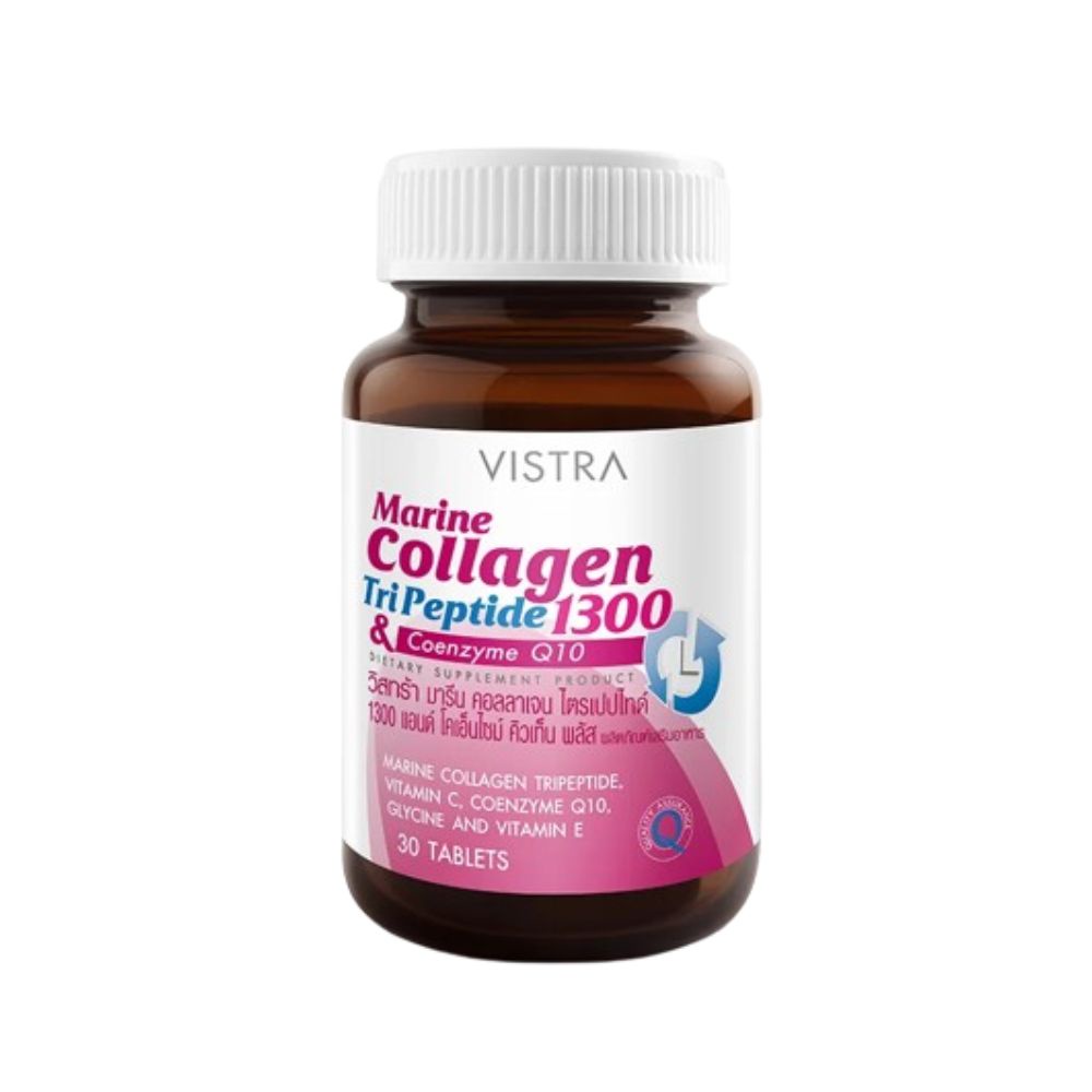 (สินค้าแนะนำ) VISTRA Marine Collagen TriPeptide 1300 & Coenzyme Q10 ผลิตภัณฑ์เสริมอาหารคอลลาเจน ไตรเปปไทด์ (30 เม็ด)