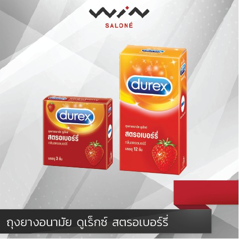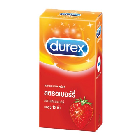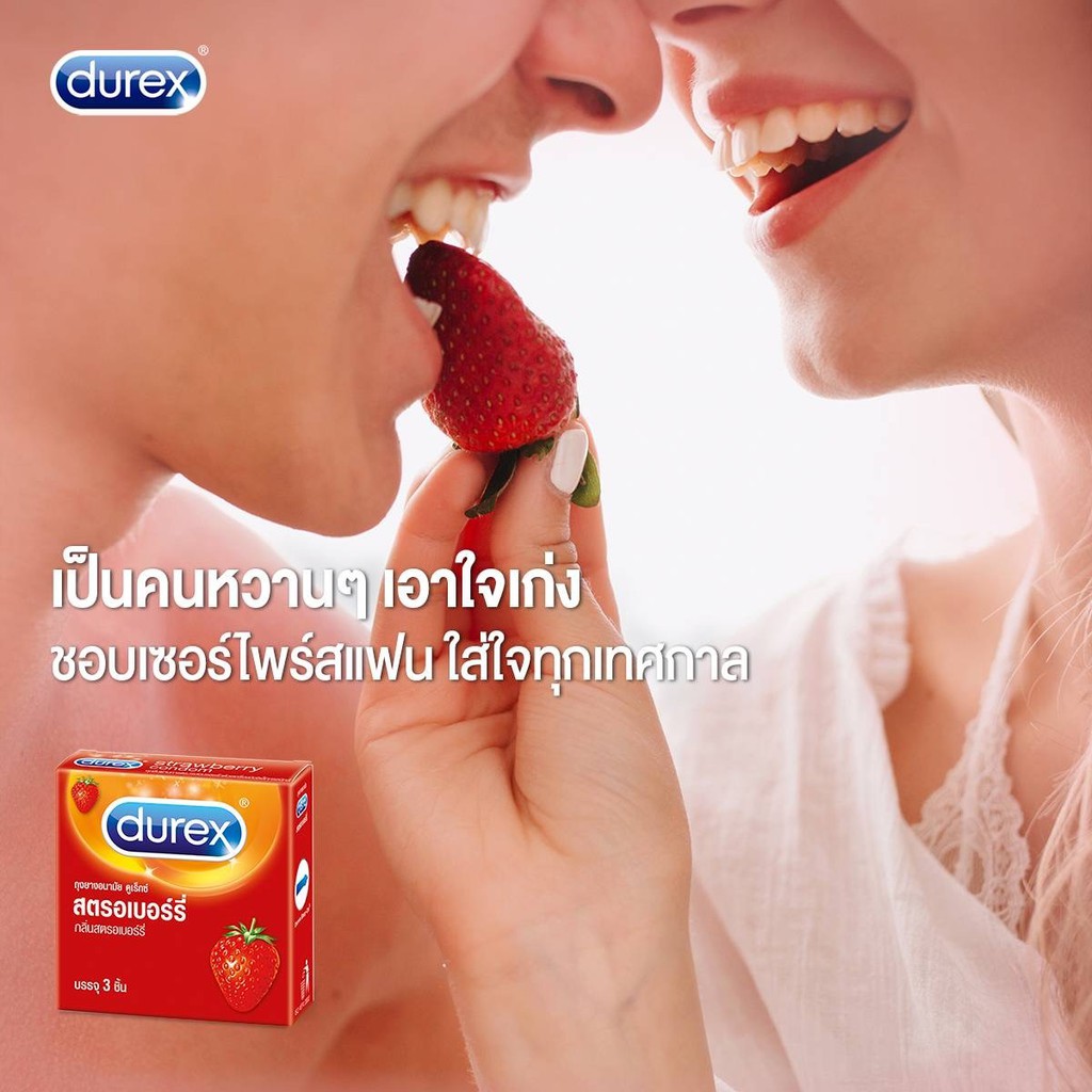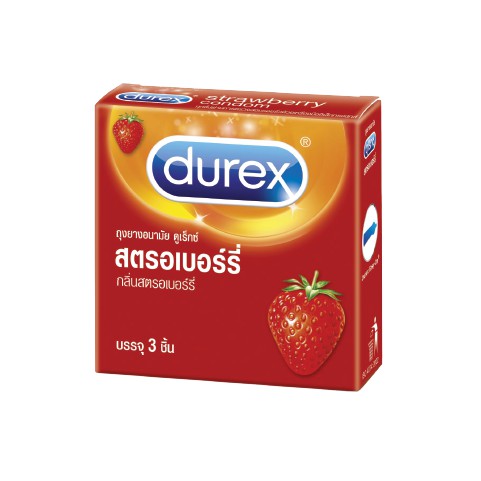 Durex ดูเร็กซ์ ถุงยางอนามัย กลิ่น สตรอเบอร์รี่ ผิวเรียบ ผนังไม่ขนาน ขนาด 52.5 มม.
