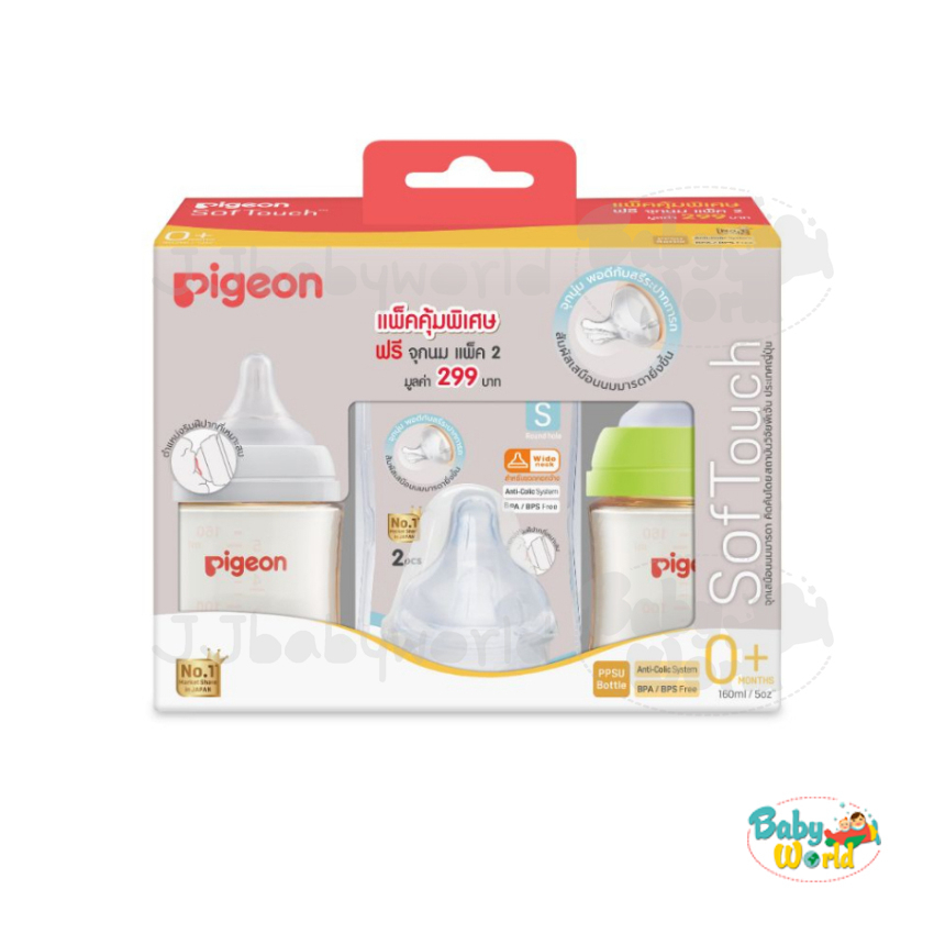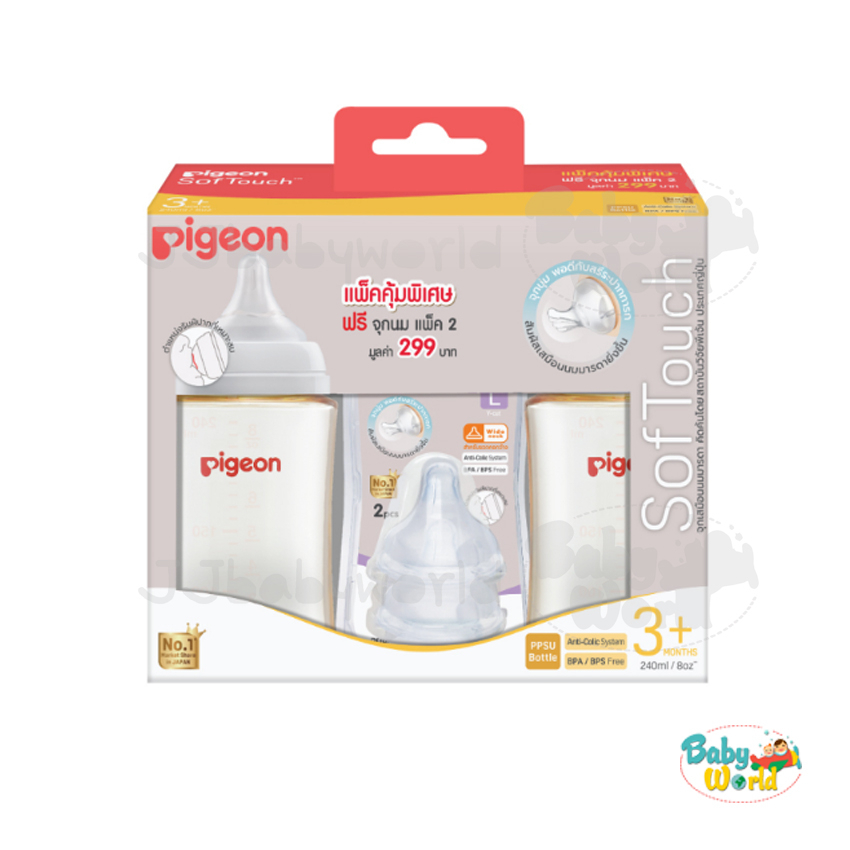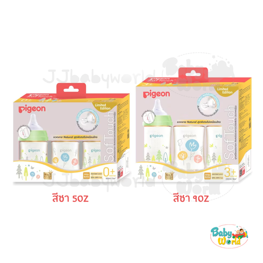 ขวดนม Pigeon สีชา คอกว้าง SofTouch 5 / 8 ออนซ์ แพคคู่ แถมจุกนมอีก 2 จุก