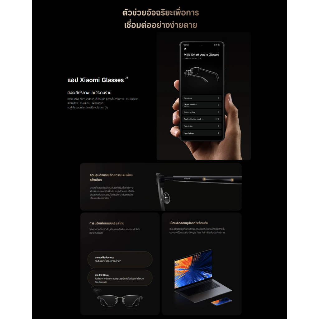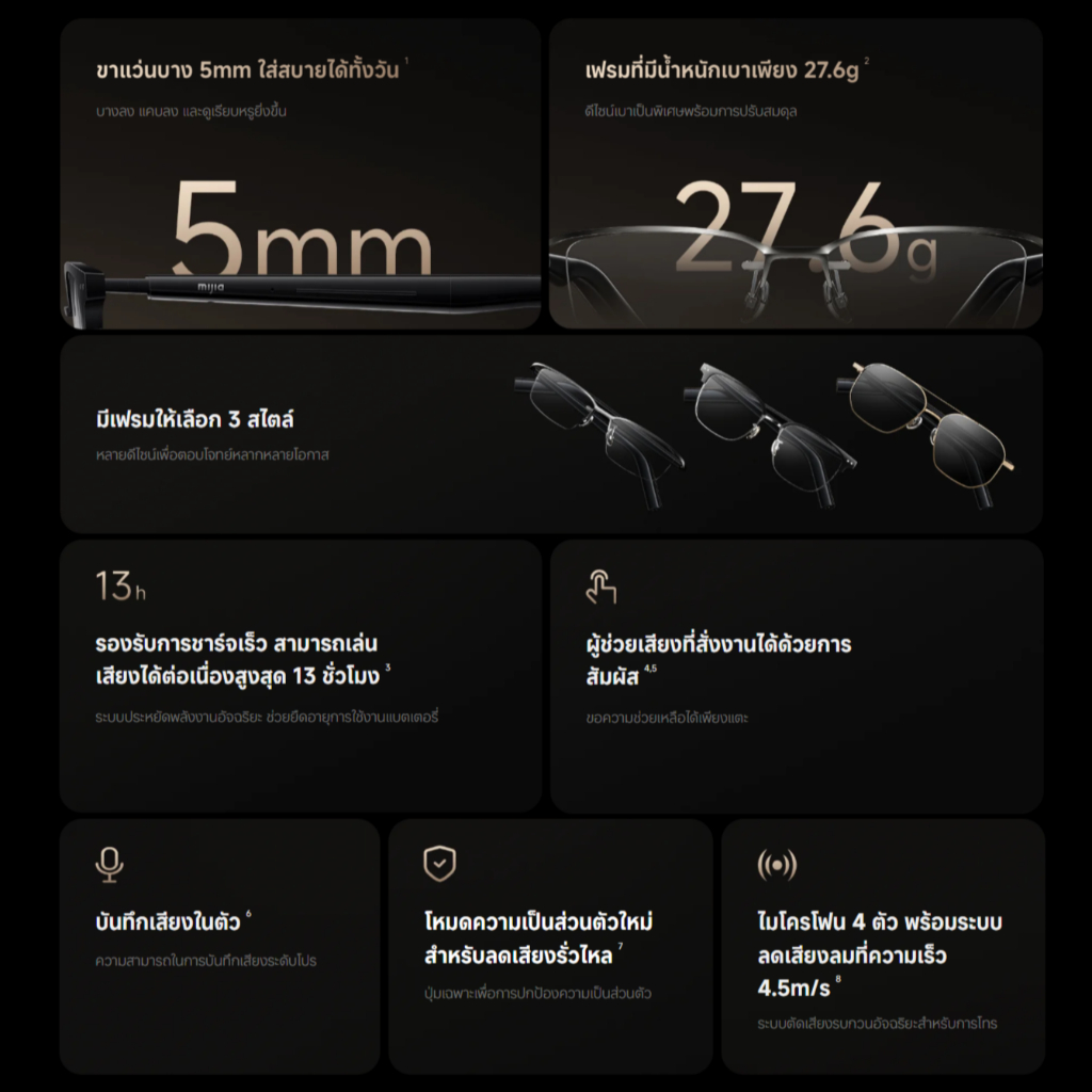 🆕Mijia Smart Audio Glasses แว่นตา เครื่องเสียงอัจฉริยะ | ผู้ช่วยเสียงที่เปิดใช้งานด้วยการสัมผัส | บันทึกเสียงในตัว