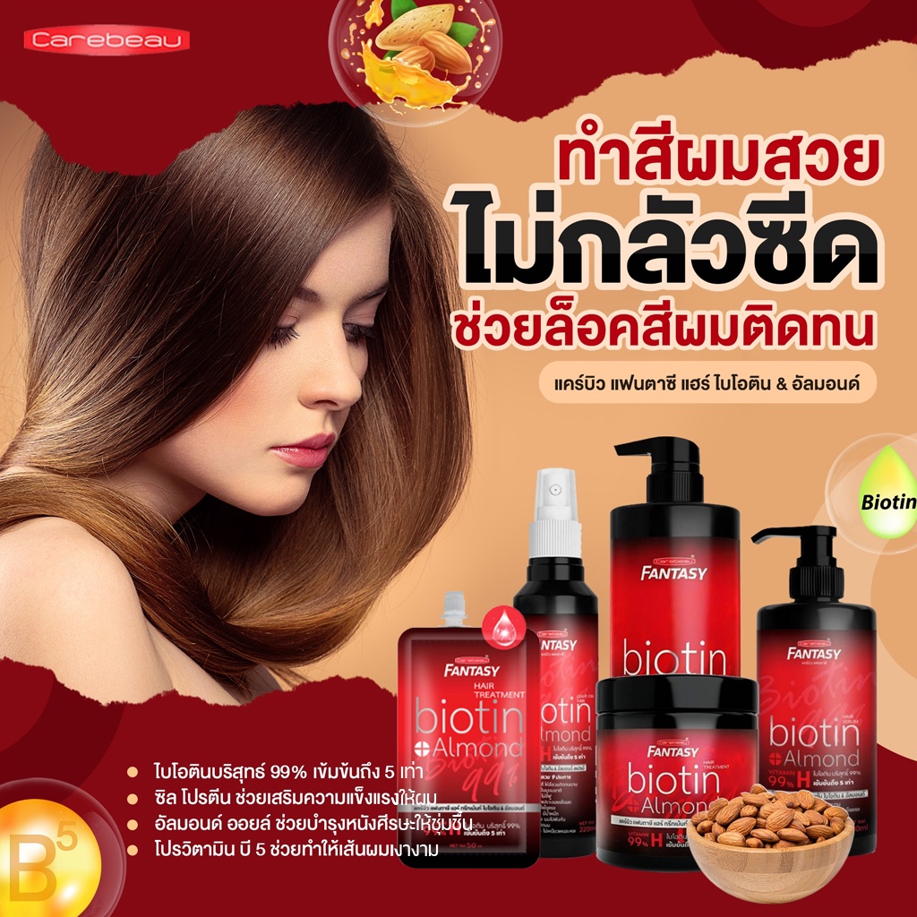 แชมพู ทรีทเม้นท์ แคร์บิว แฟนตาซี ไบโอติน&อัลมอนด์ Carebeau Fantasy Hair Biotin&Almond Shampoo Treatment