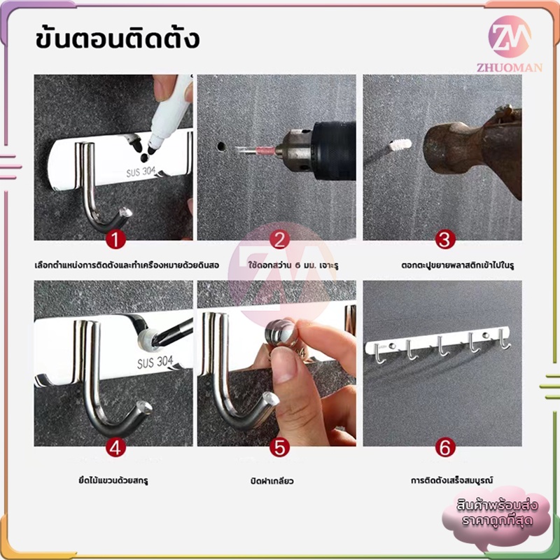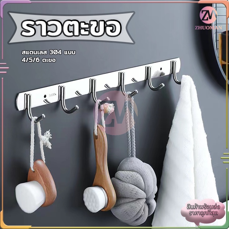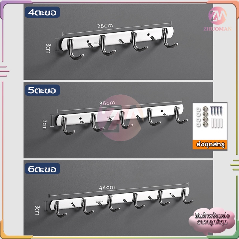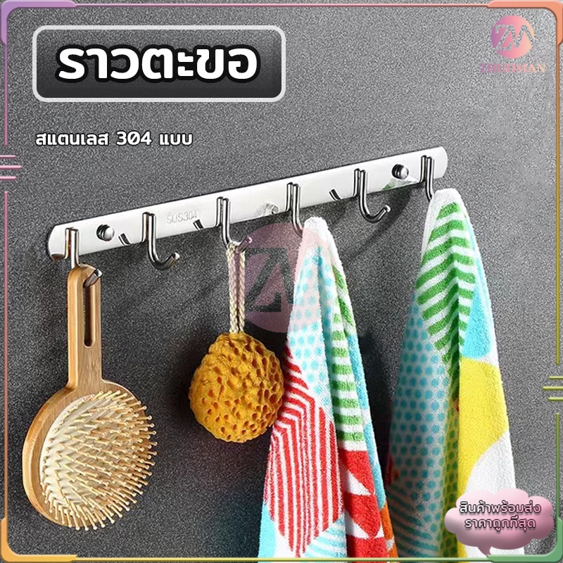 ตะขอราง ตะขอแขวน ตะขอ ที่แขวนผ้าติดผนัง มี 3 ขนาด ตะขอติดผนัง วัสดุทำมาจาก แสตนเลส 304 วัสดุคุณภาพดี กันน้ำ กันสนิม
