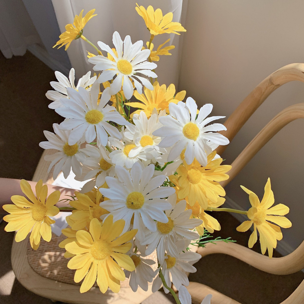 ดอกไม้ปลอม ช่อดอกเดซี่ประดิษฐ์ สำหรับตกแต่งห้อง พร็อพถ่ายรูป สไตล์มินิมอล ตกแต่งบ้านสีขาว ตกแต่งงาน พร้อมส่งจากไทย