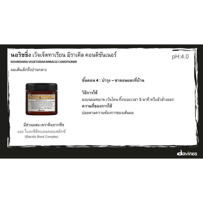 Davines Nourishing 🔥ดาวิเนส ครีมนวดผมแห้งเสีย🔥DAVINES NATURALTECH Nourishing Vegetarian Miracle Conditioner 250ml.