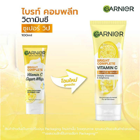 Garnier การ์นิเย่ โฟมล้างหน้า ไบรท์ คอม พลีท วิตามินซี 100มล.