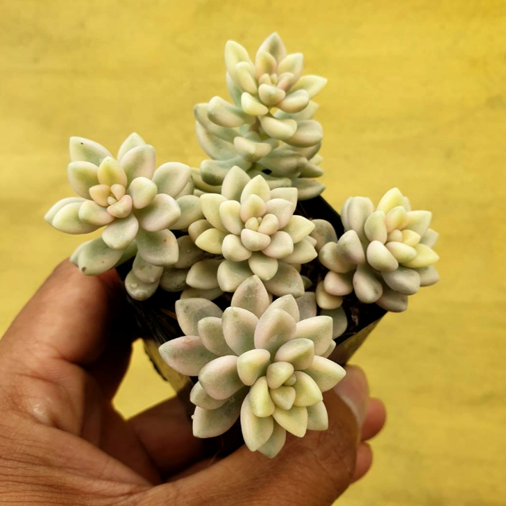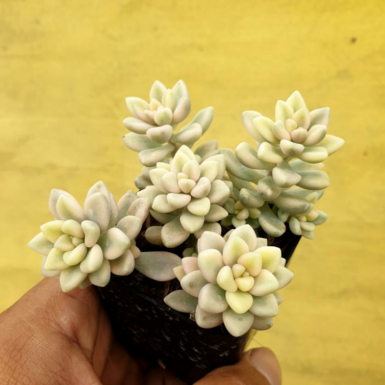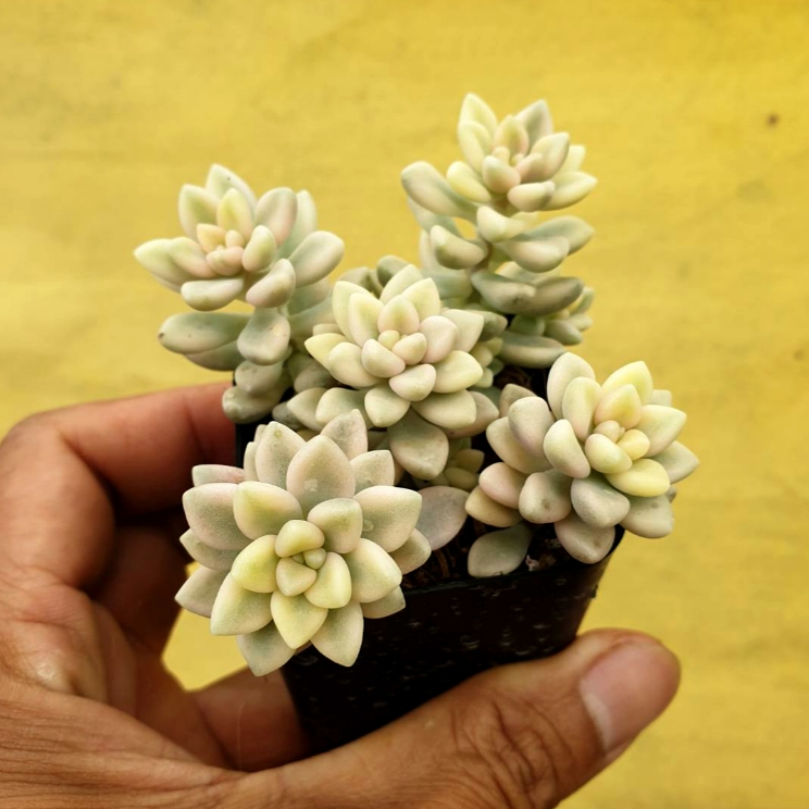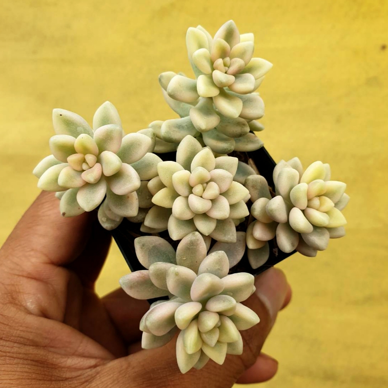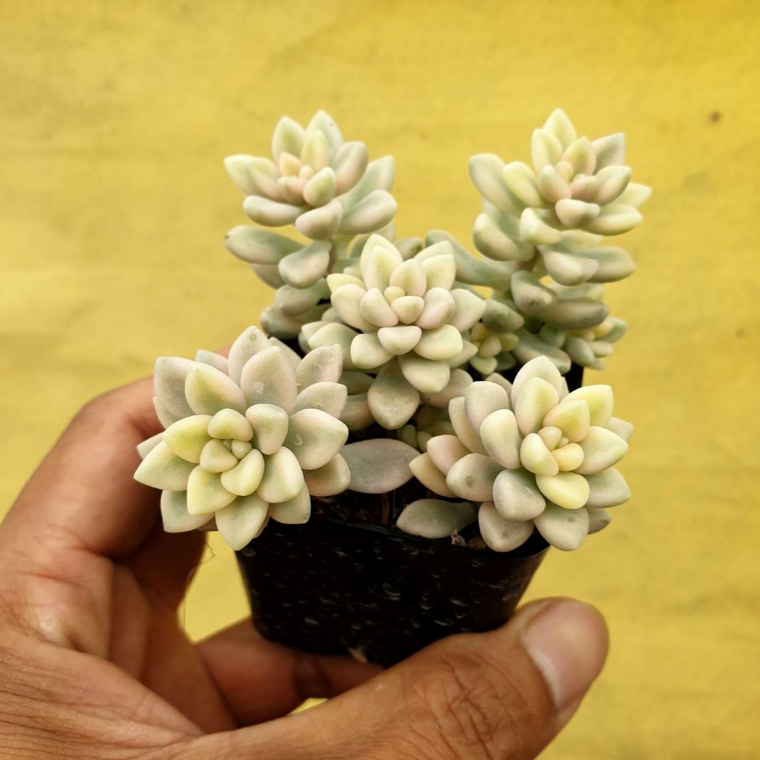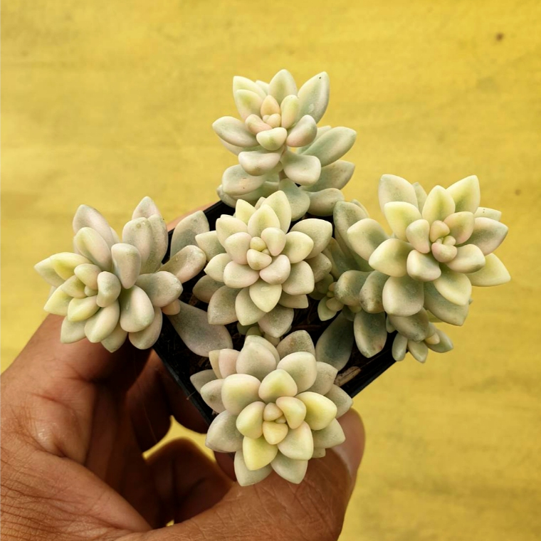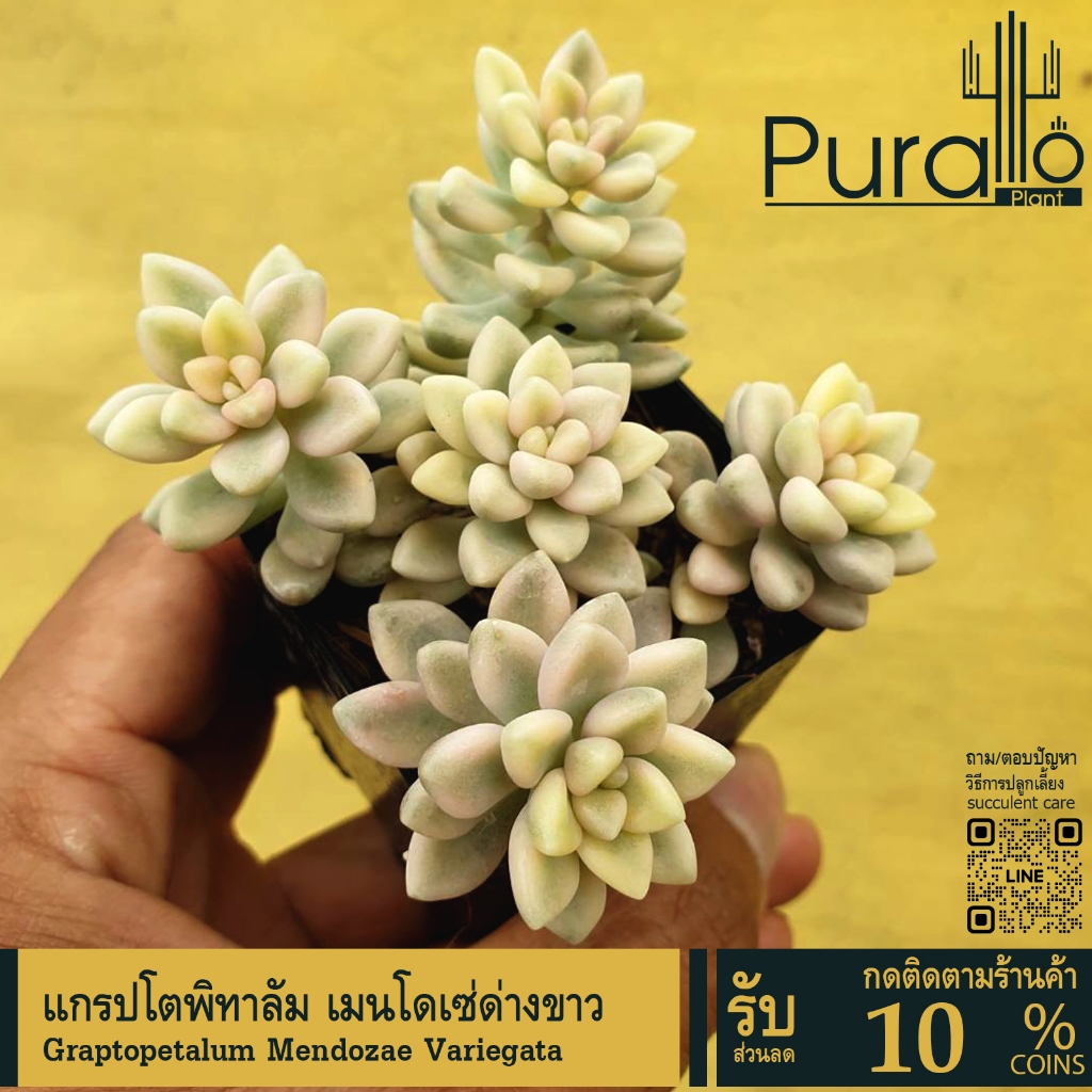 ต้นไม้อวบน้ำ กุหลาบหิน แกร๊ปโตพีทาลัม เมนโดเซ ด่างขาว Graptopetalum Mendozae Variegata #สีชมพู
