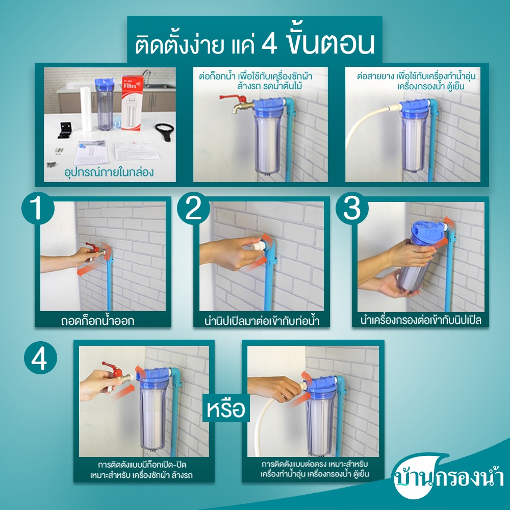 Filtex เครื่องกรองน้ำใช้ เครื่องกรองน้ำ 1 ขั้นตอน รุ่น FT-407 พร้อมไส้กรองหยาบ 1 ชิ้น