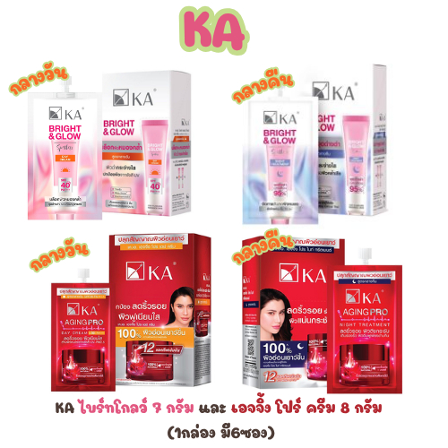 KA (เคเอ) ไบร์ทแอนโกลว์ 7กรัม และ เคเอ เอจจิ้ง โปร 8กรัม /กลางวันกลางคืน(ยกกล่อง6ซอง)