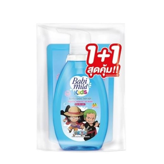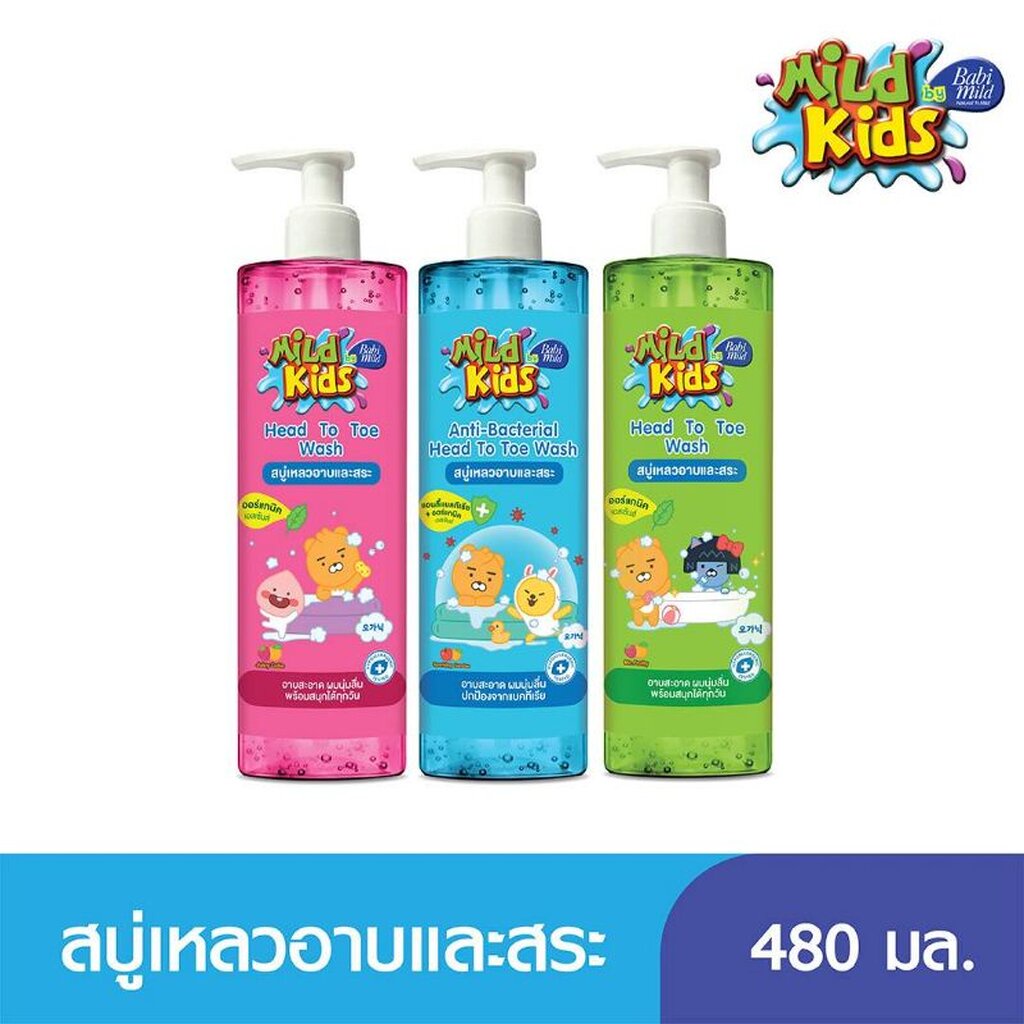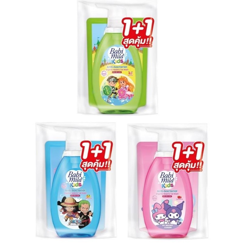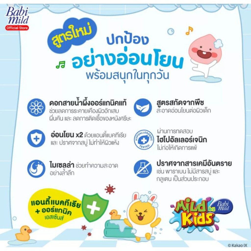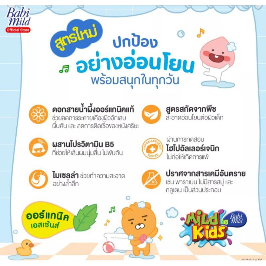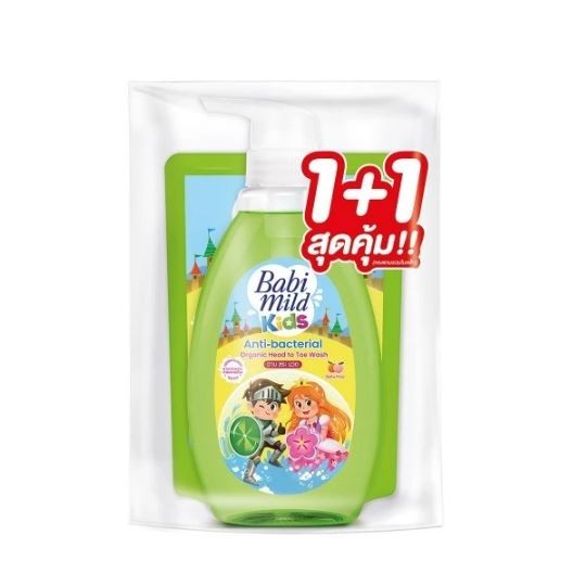 Babi mild เบบี้มายค์ มายค์คิดส์ เฮดทูโท สบู่อาบน้ำเด็ก ขนาด 390มล แถมถุง200 มล [โฉมใหม่]