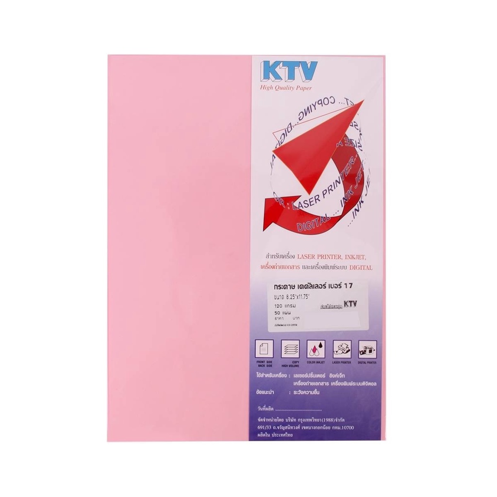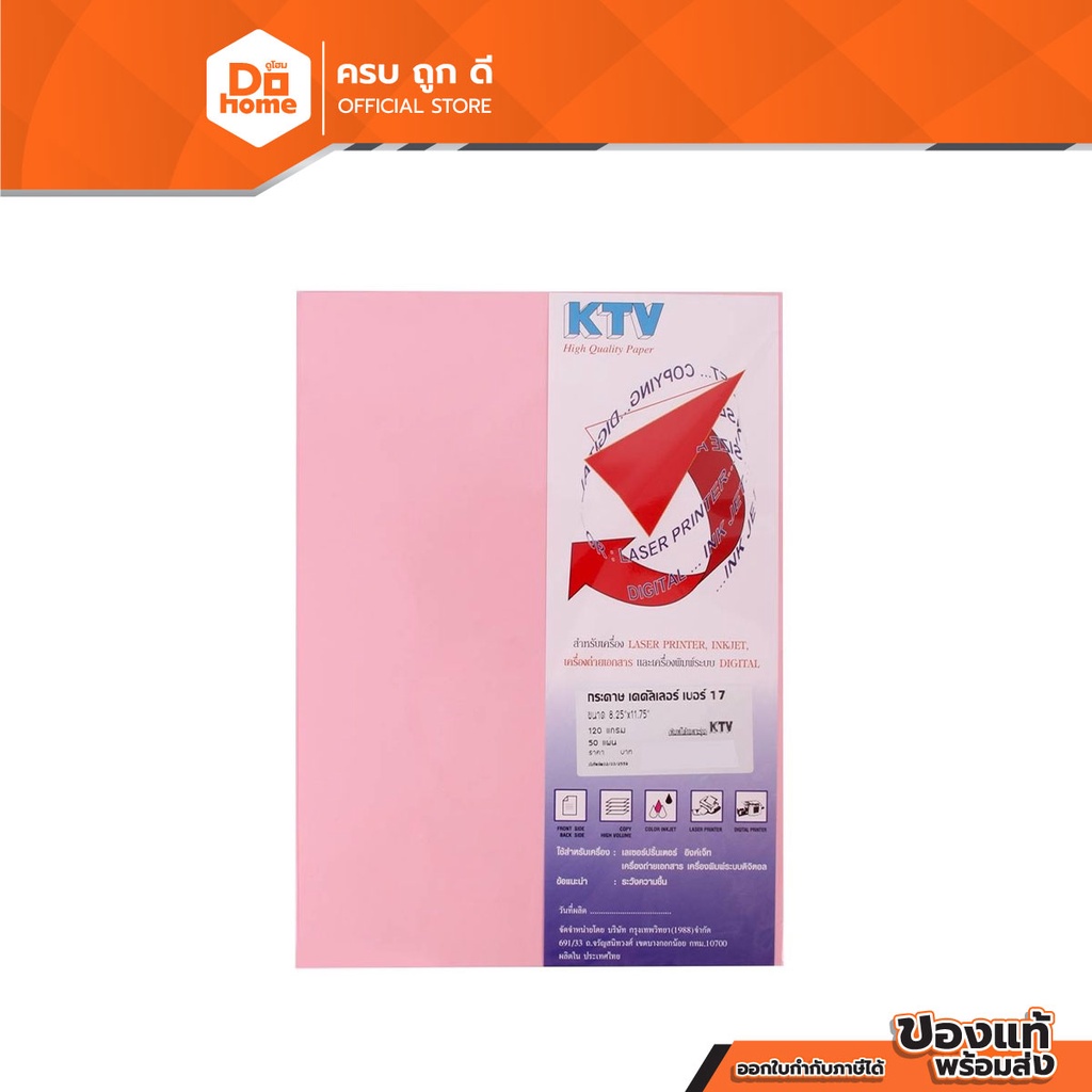 KTV กระดาษทำปก A4 120 แกรม 50 แผ่น เบอร์ 17 สีชมพู |ZWG|