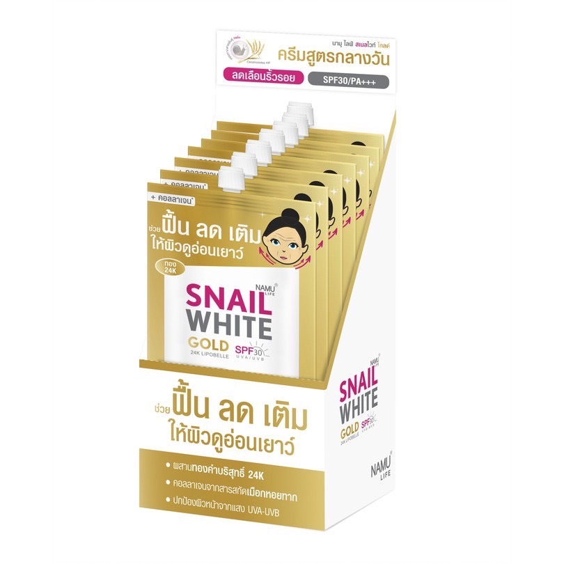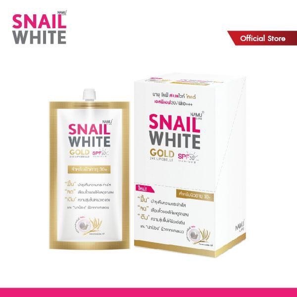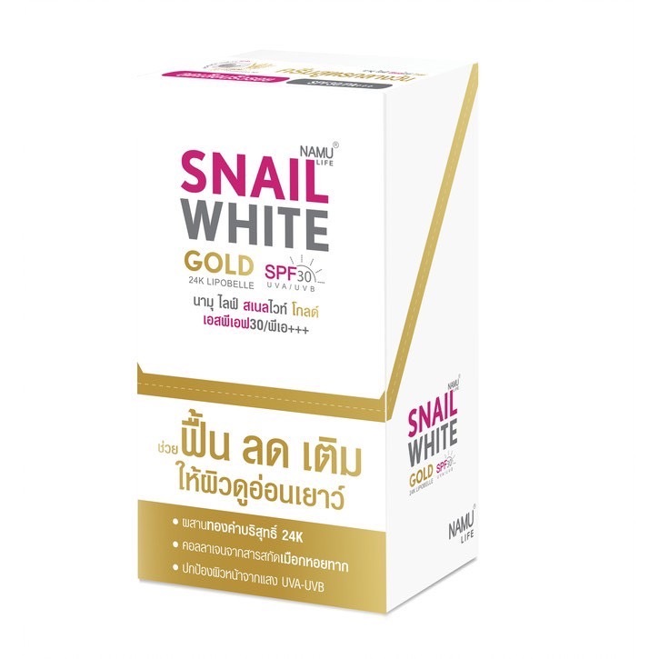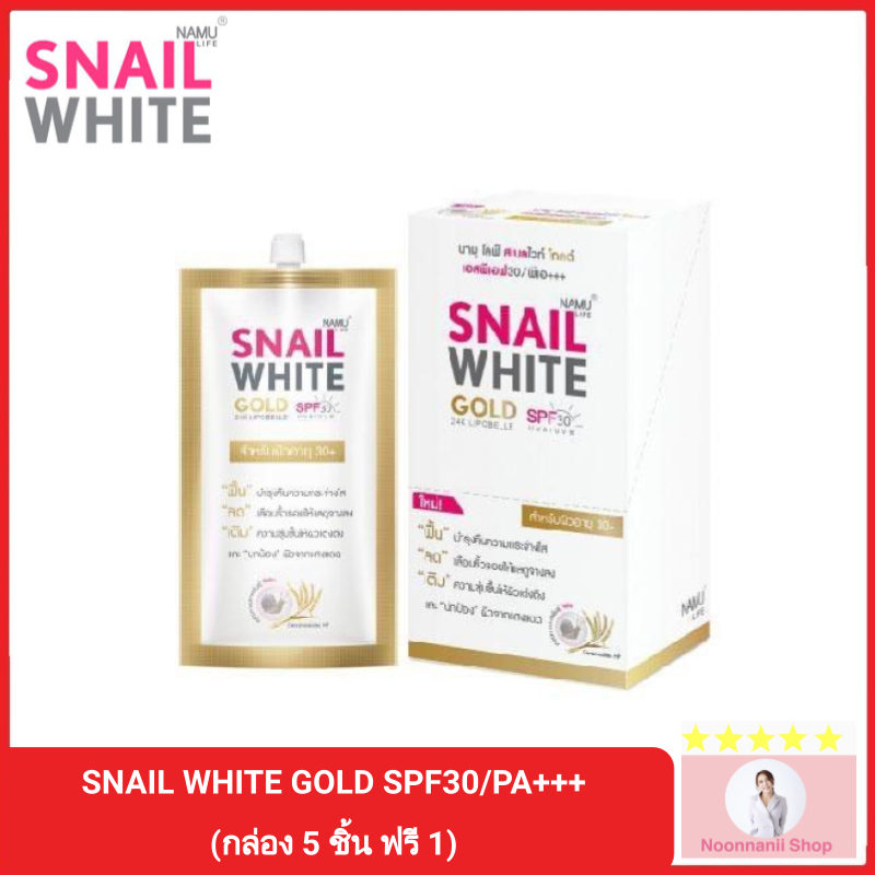 NAMU LIFE SNAILWHITE นามุ ไลฟ์ สเนลไวท์ โกลด์ เอสพีเอฟ30 พีเอ+++ 7มล. (กล่อง 5 ชิ้น แถม 1)