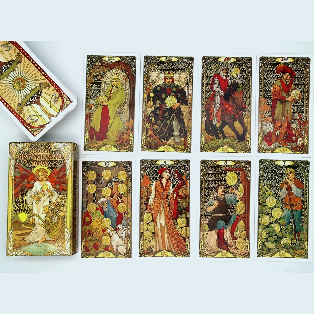 Golden Art Nouveau Tarot Deck 78 Cards with Guidebook Cards Occult Divination Book Sets for Beginners Box Major and Minor