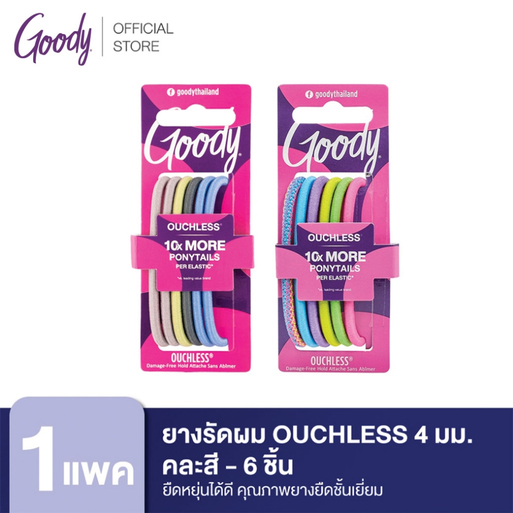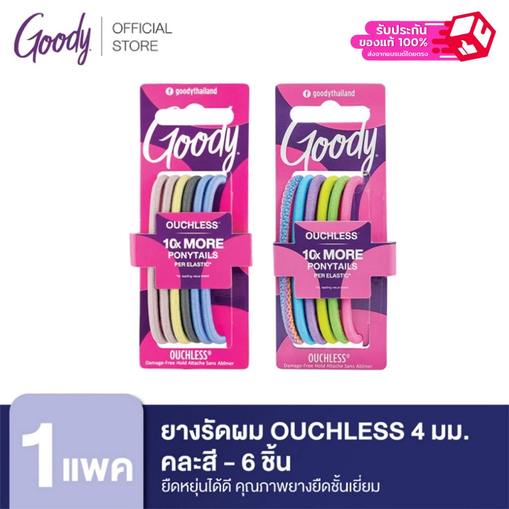 Goody ยางรัดผมคุณภาพดี 05003 คละสี Ouchless 4MM Large Elastics Moderne - คละสี (6 ชิ้น)