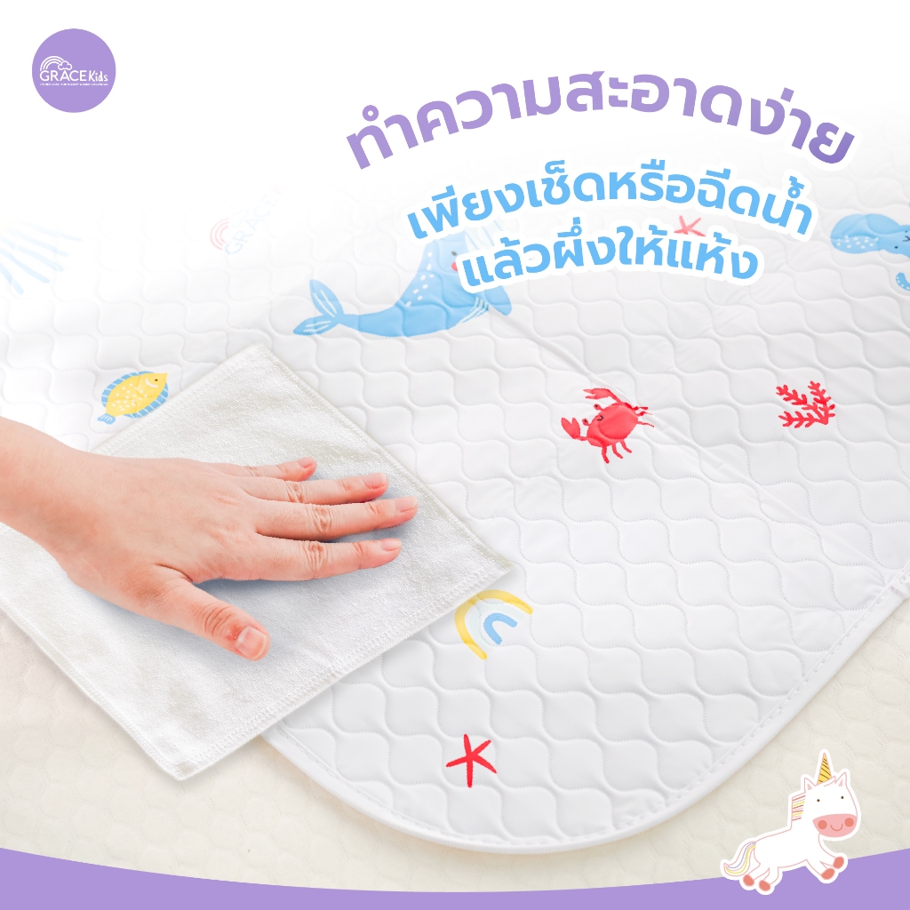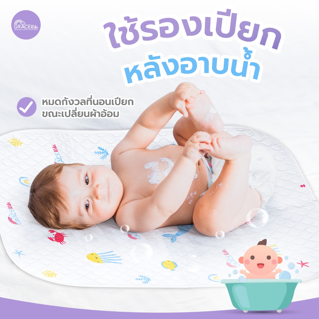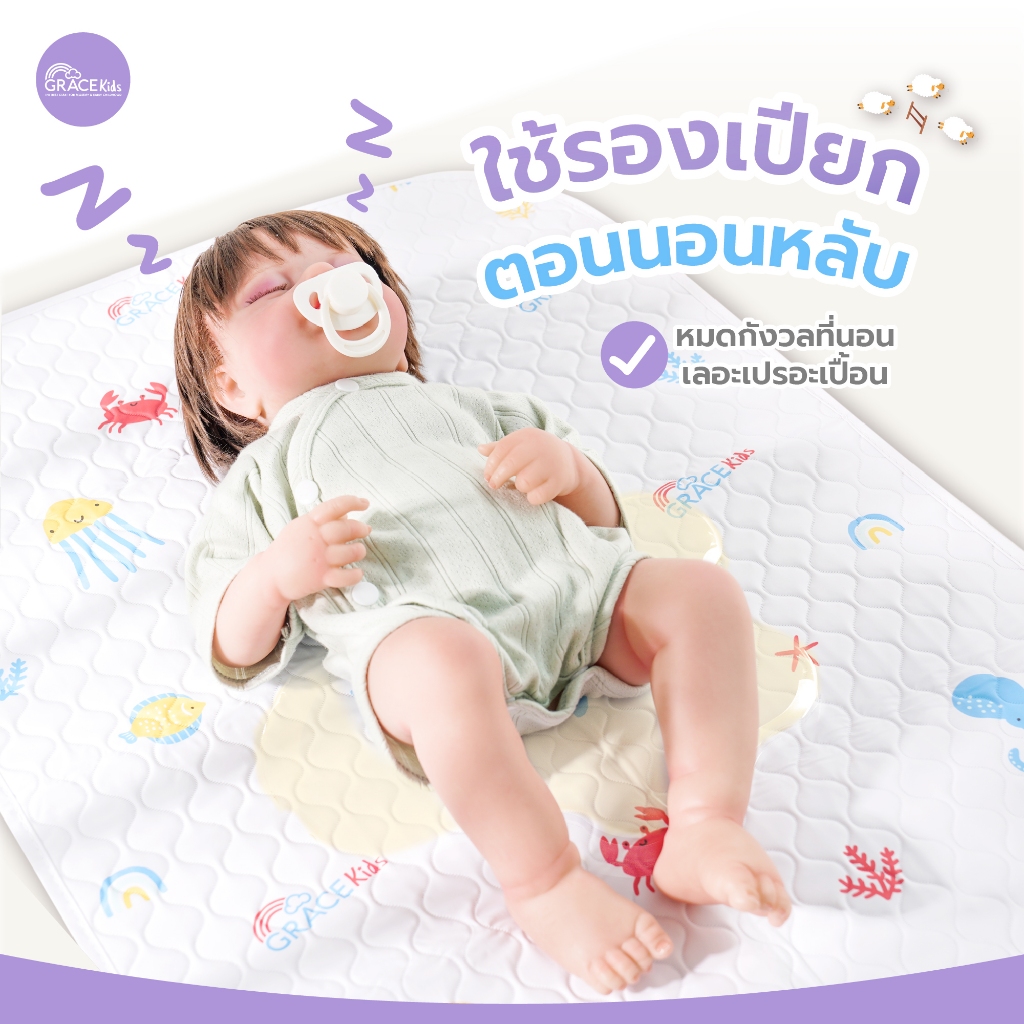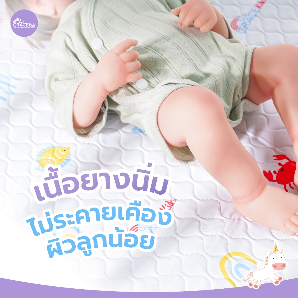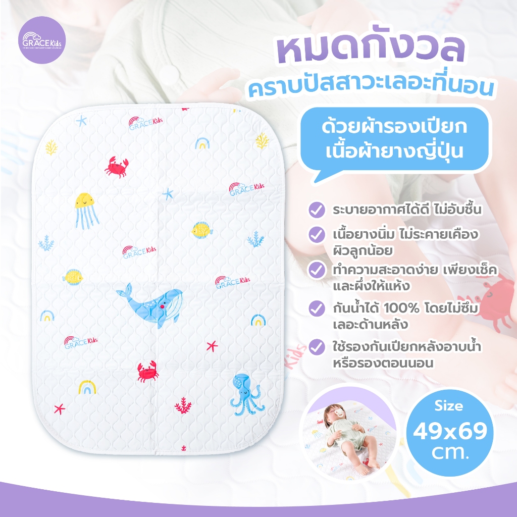 Grace Kids ผ้ายางรองฉี่เด็ก กันน้ำ 100% | แผ่นรองกันเปียก | 49x69 ซม.