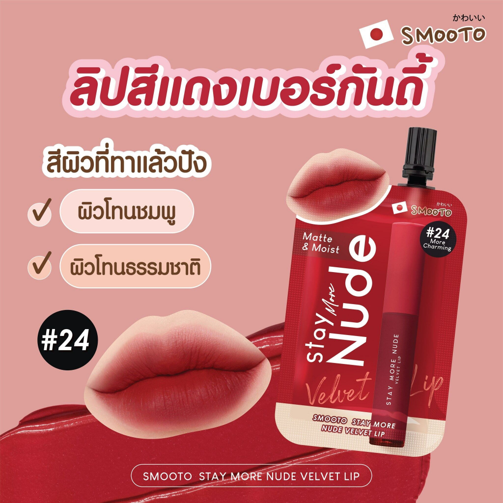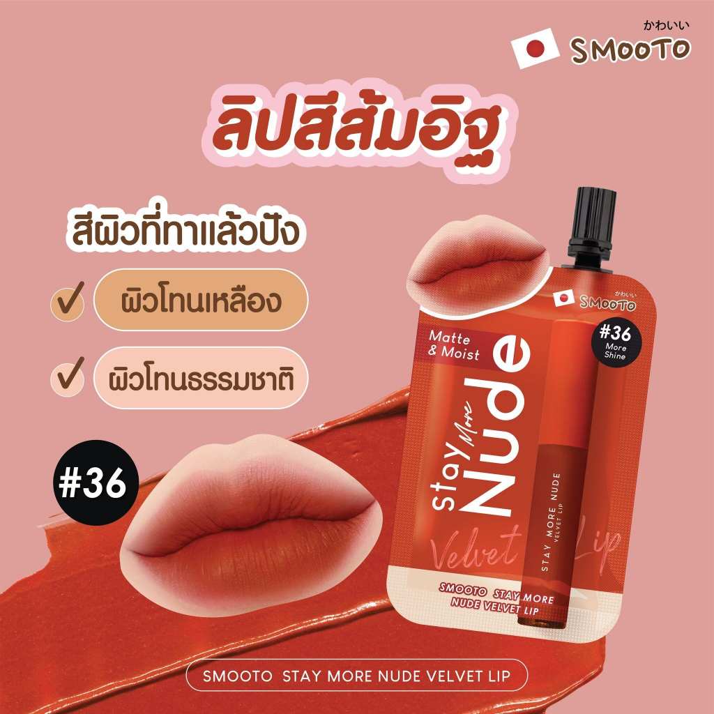 (1ซอง) สมูทโตะ สเตย์ มอร์ นู้ด เวลเวท ลิป Smooto Stay More Nude Velvet Lip