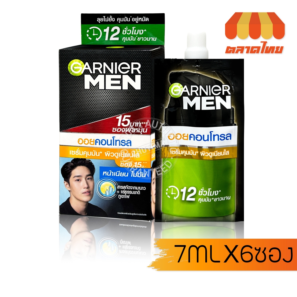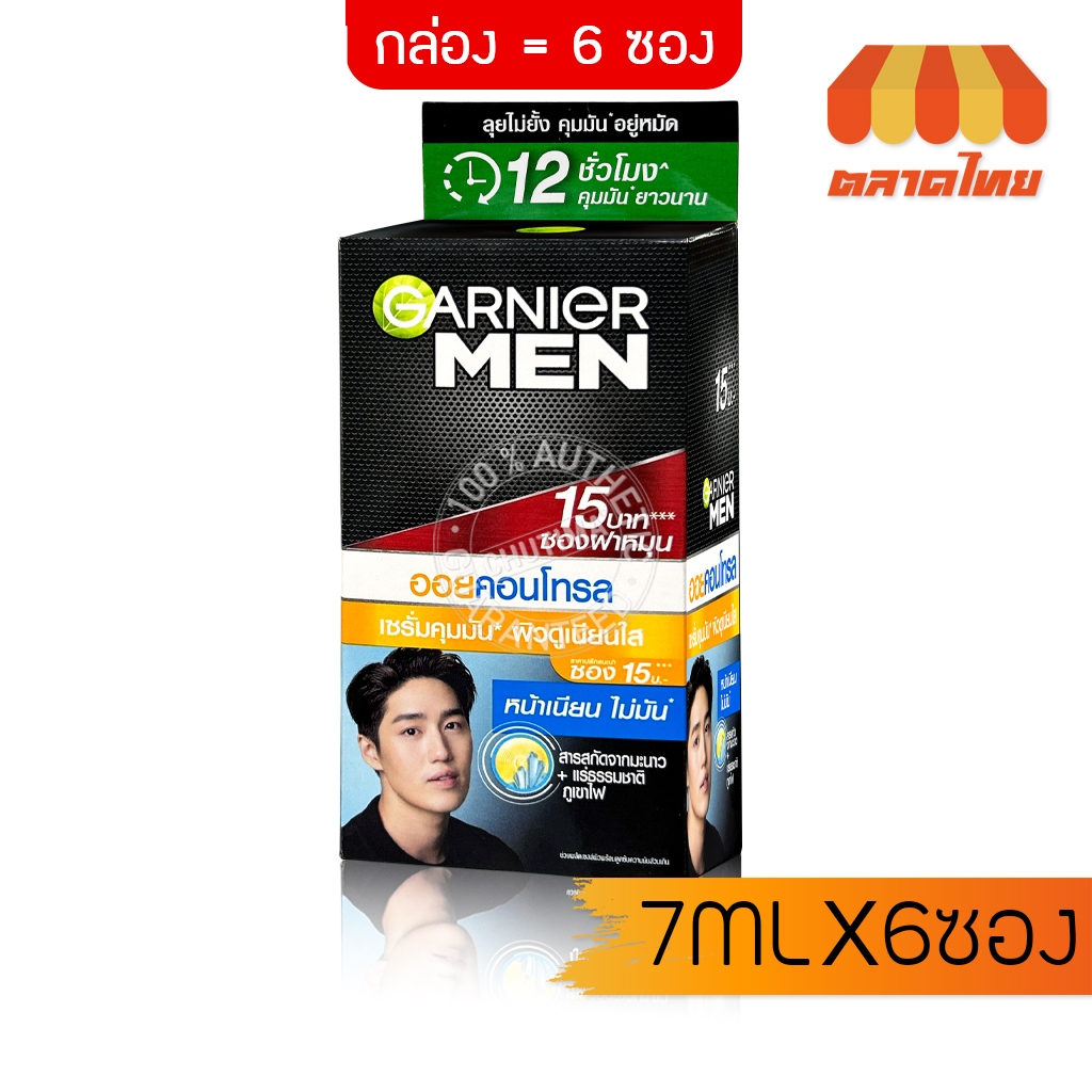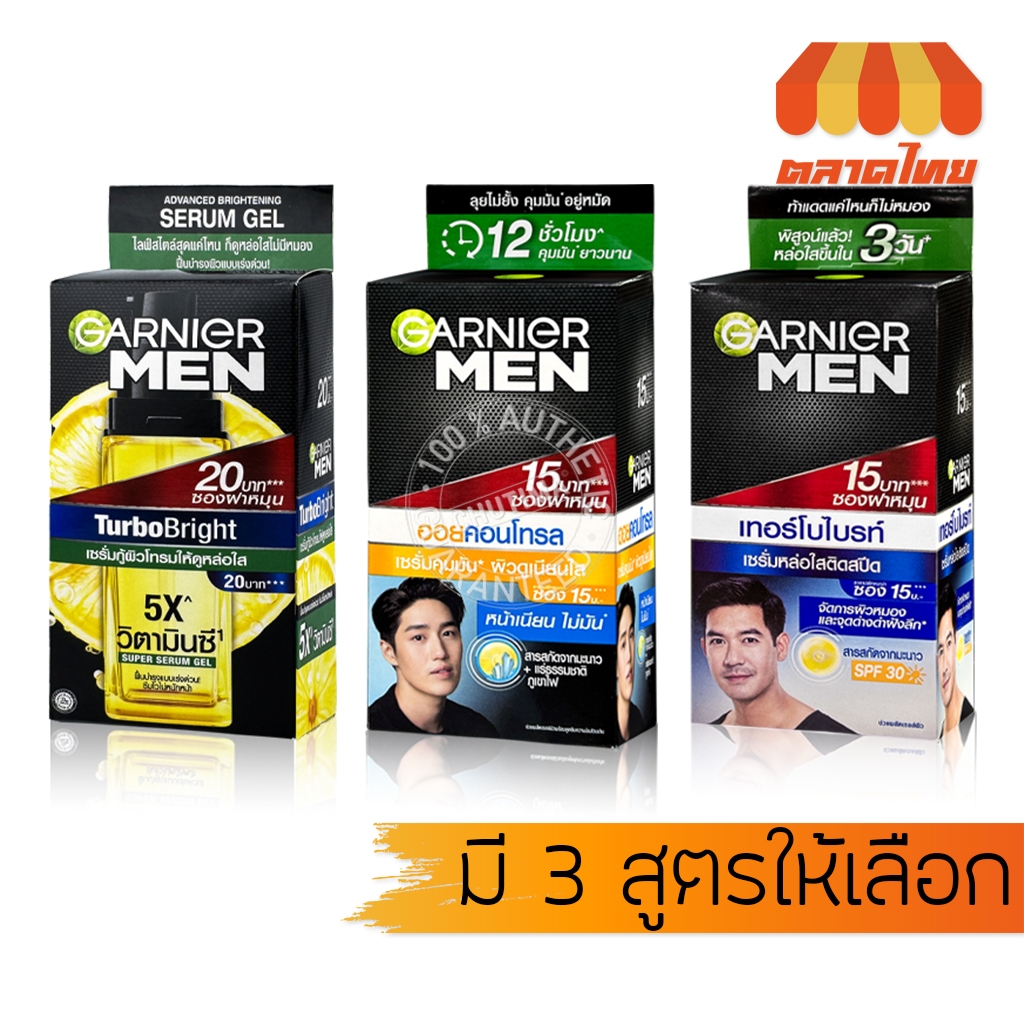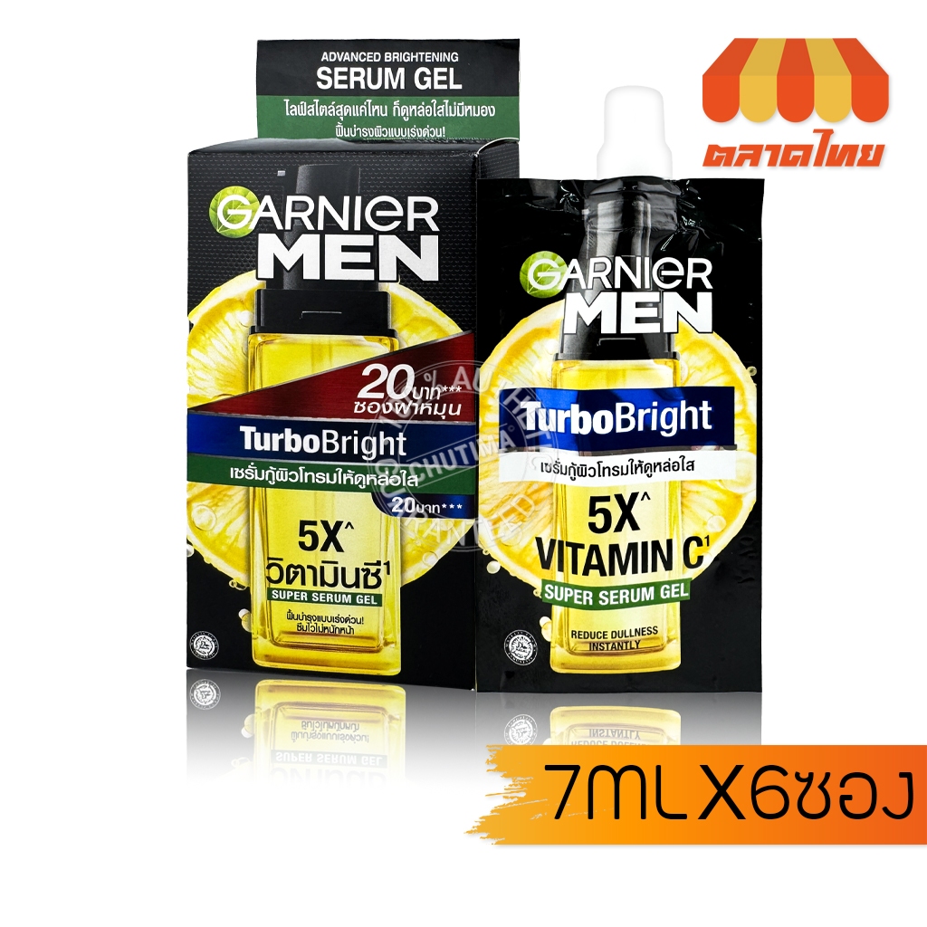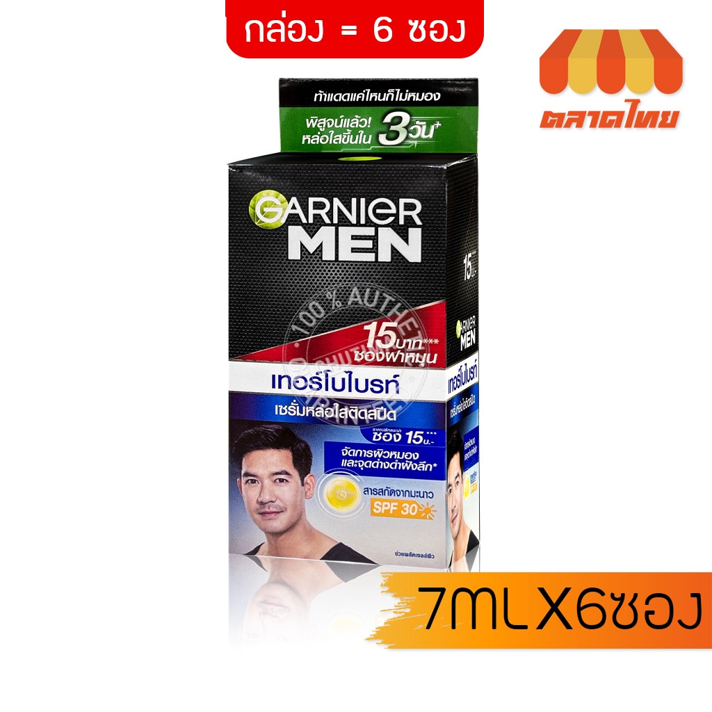 (กล่อง 6 ซอง) การ์นิเย่ เมน เซรั่ม ครีมซอง Garnier Men TurboBright Super Serum / Brightening SPF50+ / Oil Control Serum