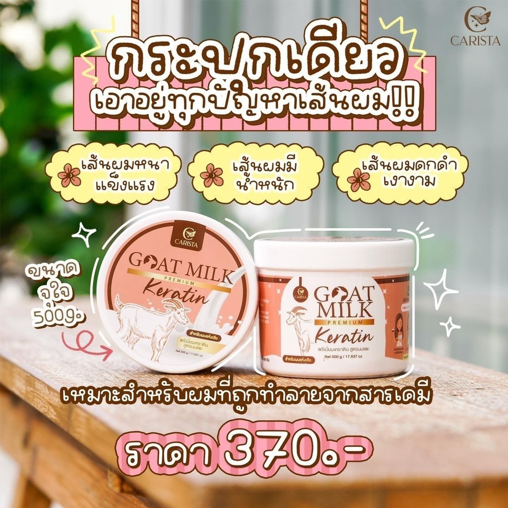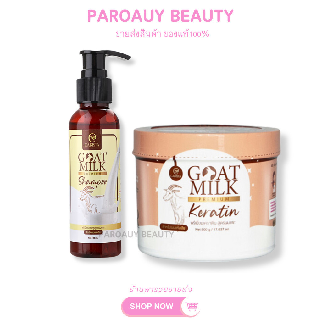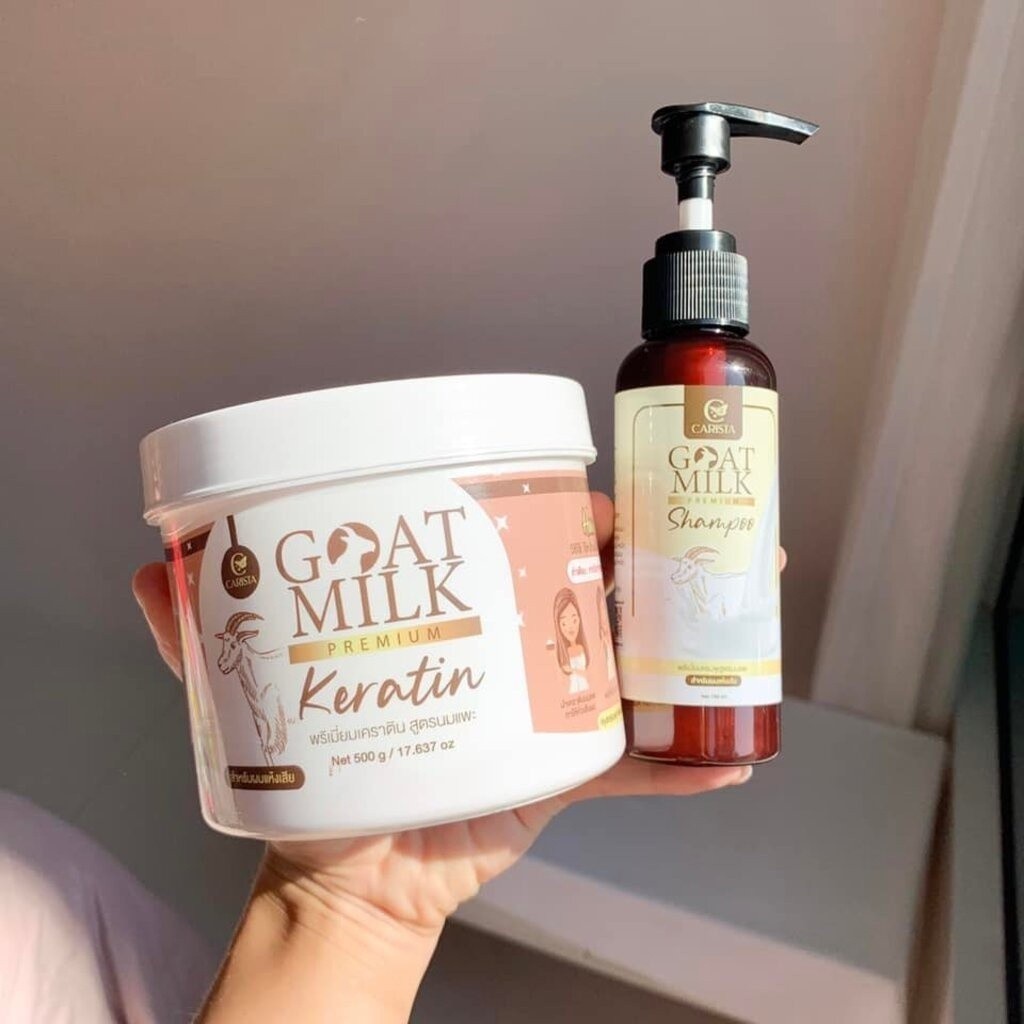 เซ็ตคู่ (แชมพูนมแพะ + กระปุกใหญ่เคราตินนมแพะ) Goat milk Prmium by Carista 1 เซ็ตได้ 2 ชิ้น