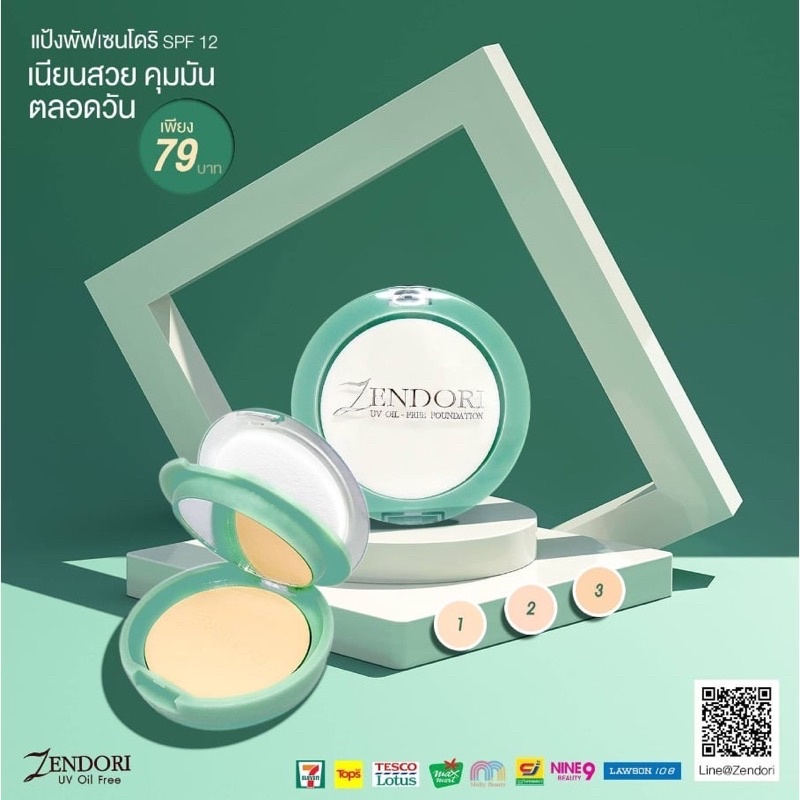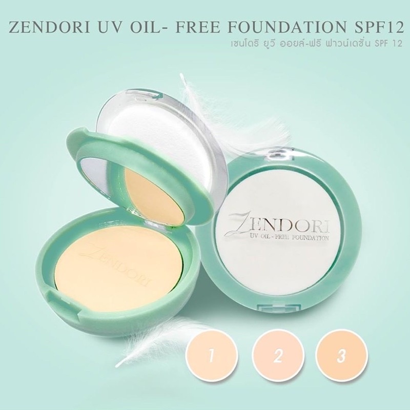 พร้อมส่ง/มีไลฟ์ ลด50% ‼️Zendori UV Oil Free Foundation SPF12 แป้งเชนโดริ ยูวี ออยล์-ฟรี ฟาวน์เดชั่น (สีเขียว)