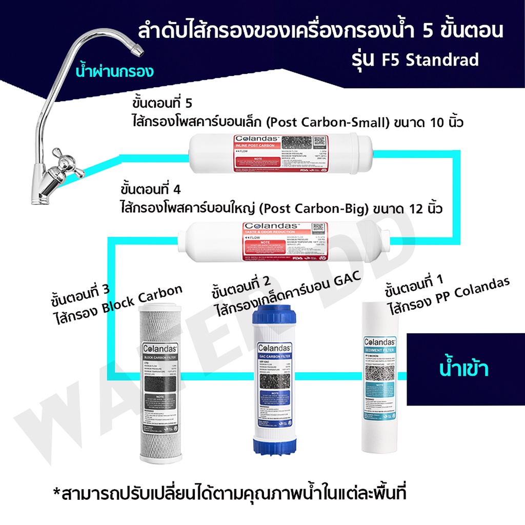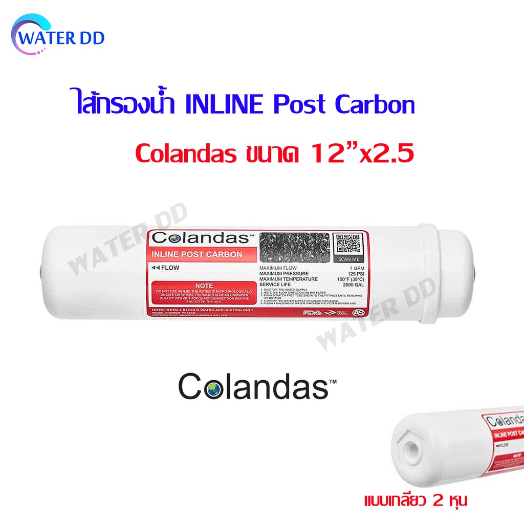 Colandas ไส้กรองน้ำ Post Carbon Colandas ขนาด 12 นิ้ว ดูดซับกลิ่นคลอรีน สีที่เจือปนอยู่ในน้ำ ปรับความเป็นกรด-ด่างในน้ำ