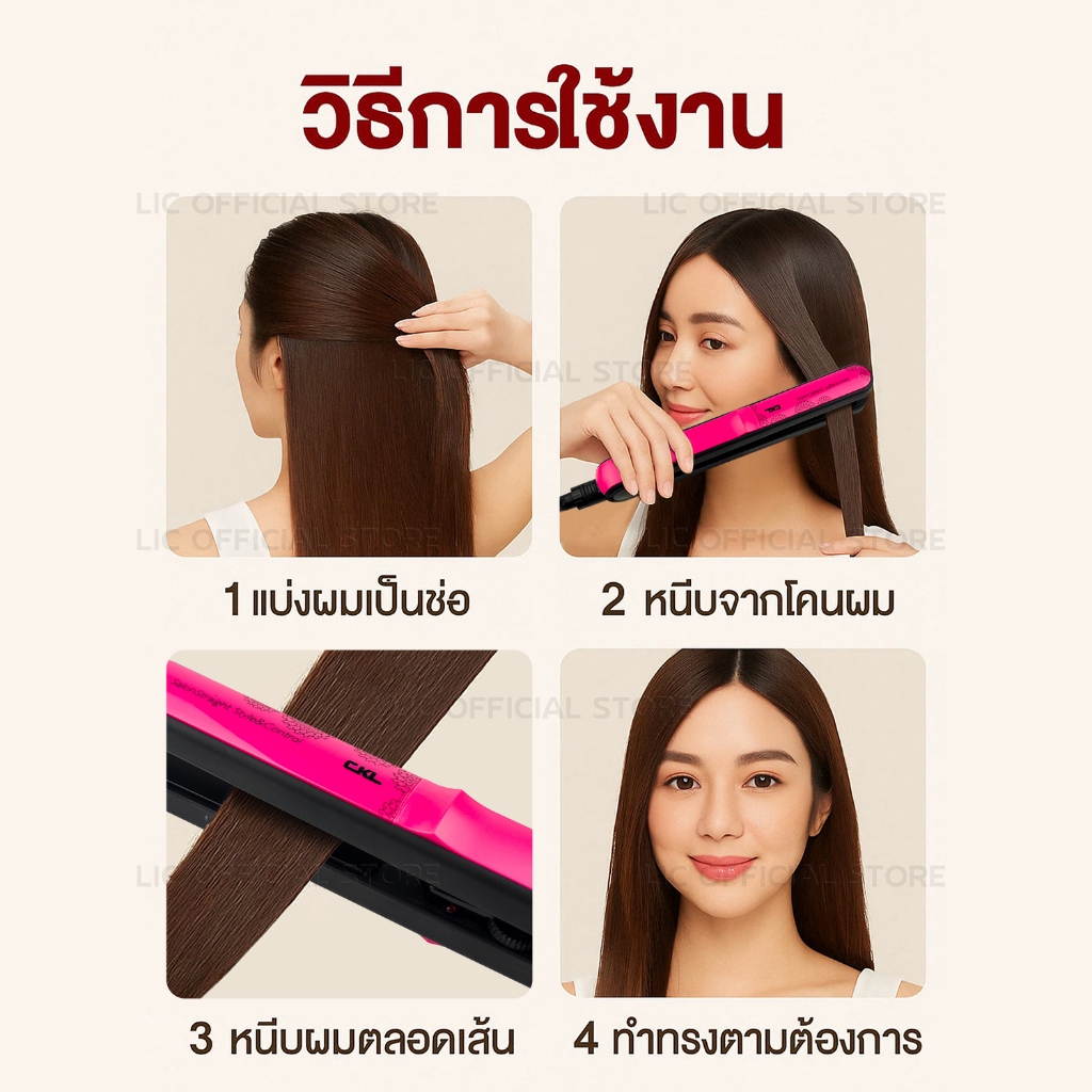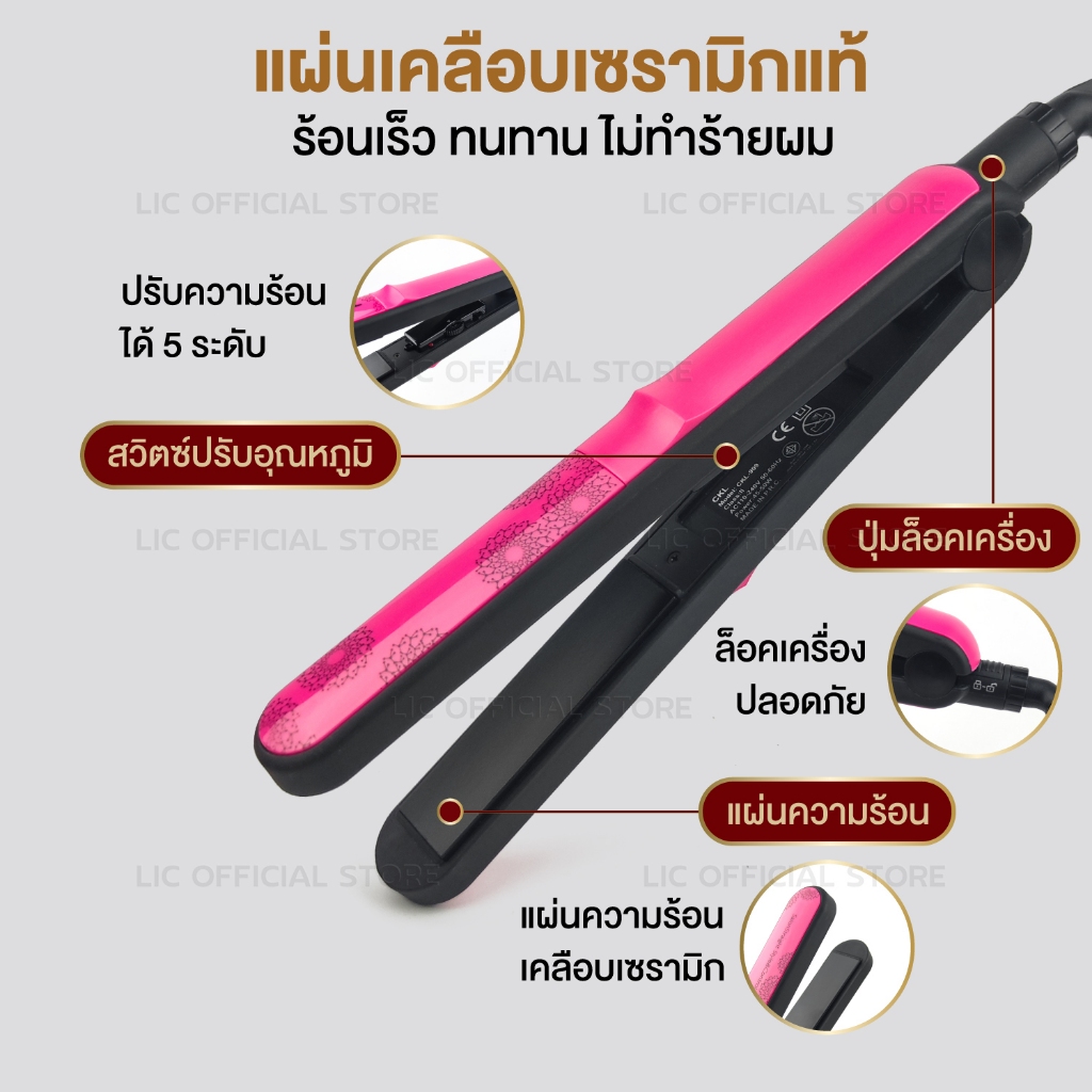 LIC 🔥 ถนอมผม ไม่ทำให้ผมเสีย 🔥 CKL 909 / CKL 1021 เครื่องหนีบผม เครื่องม้วนผม หนีบผม ที่ม้วนผม ที่ดัดผม แก นม้วนผม(สีชมพู)