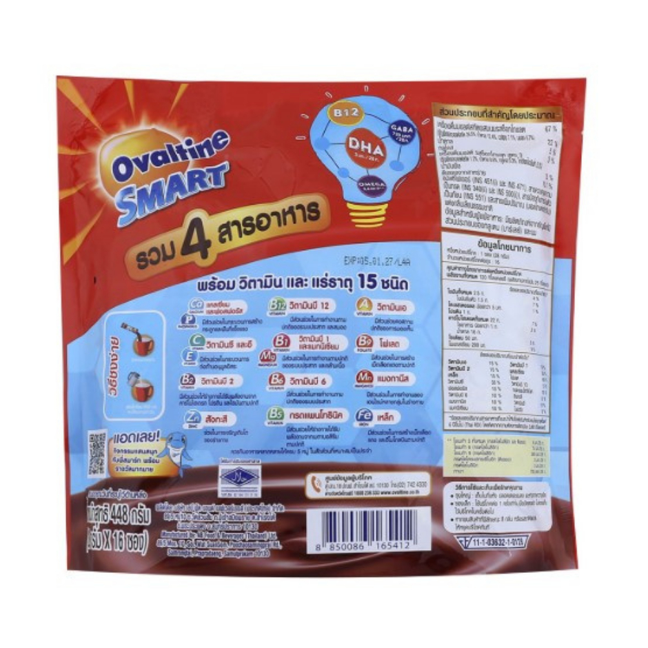 โอวัลติน สมาร์ท เครื่องดื่มมอลต์สกัดรสช็อกโกแลต สูตรผสมดีเอชเอ ขนาด 448 กรัม(28กรัมX16ซอง)