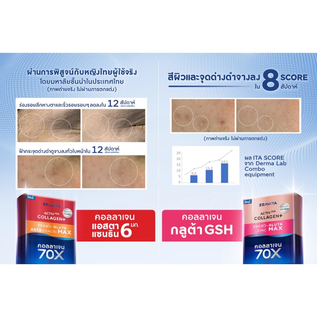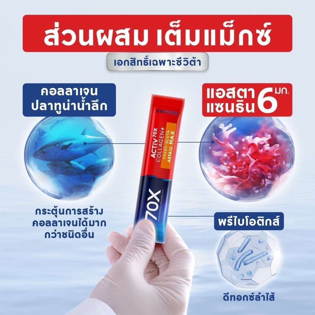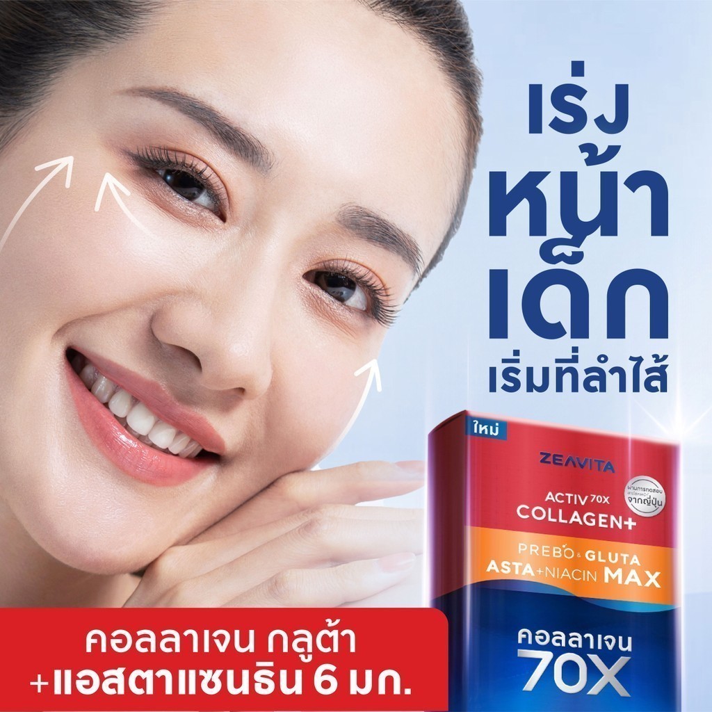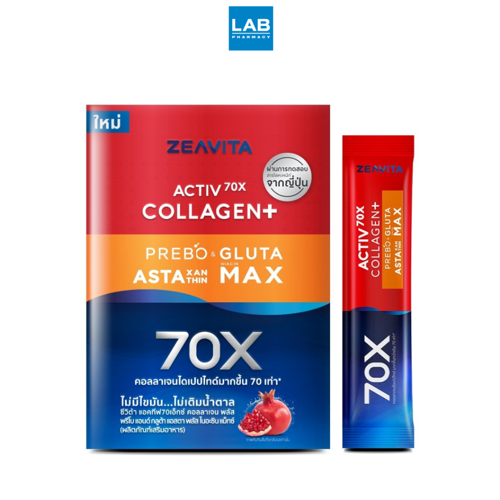 Zeavita Active 70x Collagen Plus Prebo & Gluta Astaxanthin Niacin Max ซีวิต้า แอคทีฟ 70 เอ็กซ์ คอลลาเจน พลัส พรีโบ