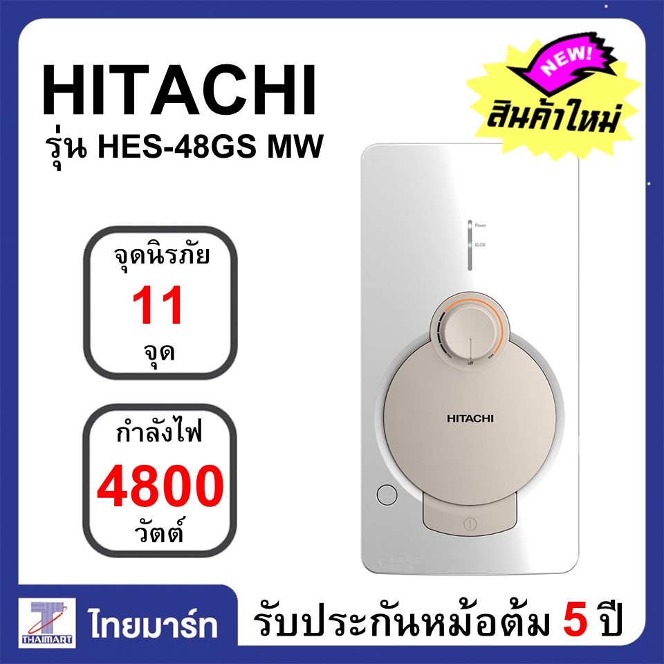HITACHI เครื่องทำน้ำอุ่น 4800 วัตต์ Hitachi รุ่นหม้อต้มทองแดงสีเคลือบเมทัลลิก hes48gs HES-48GS คละสี | ไทยมาร์ท THAIMART